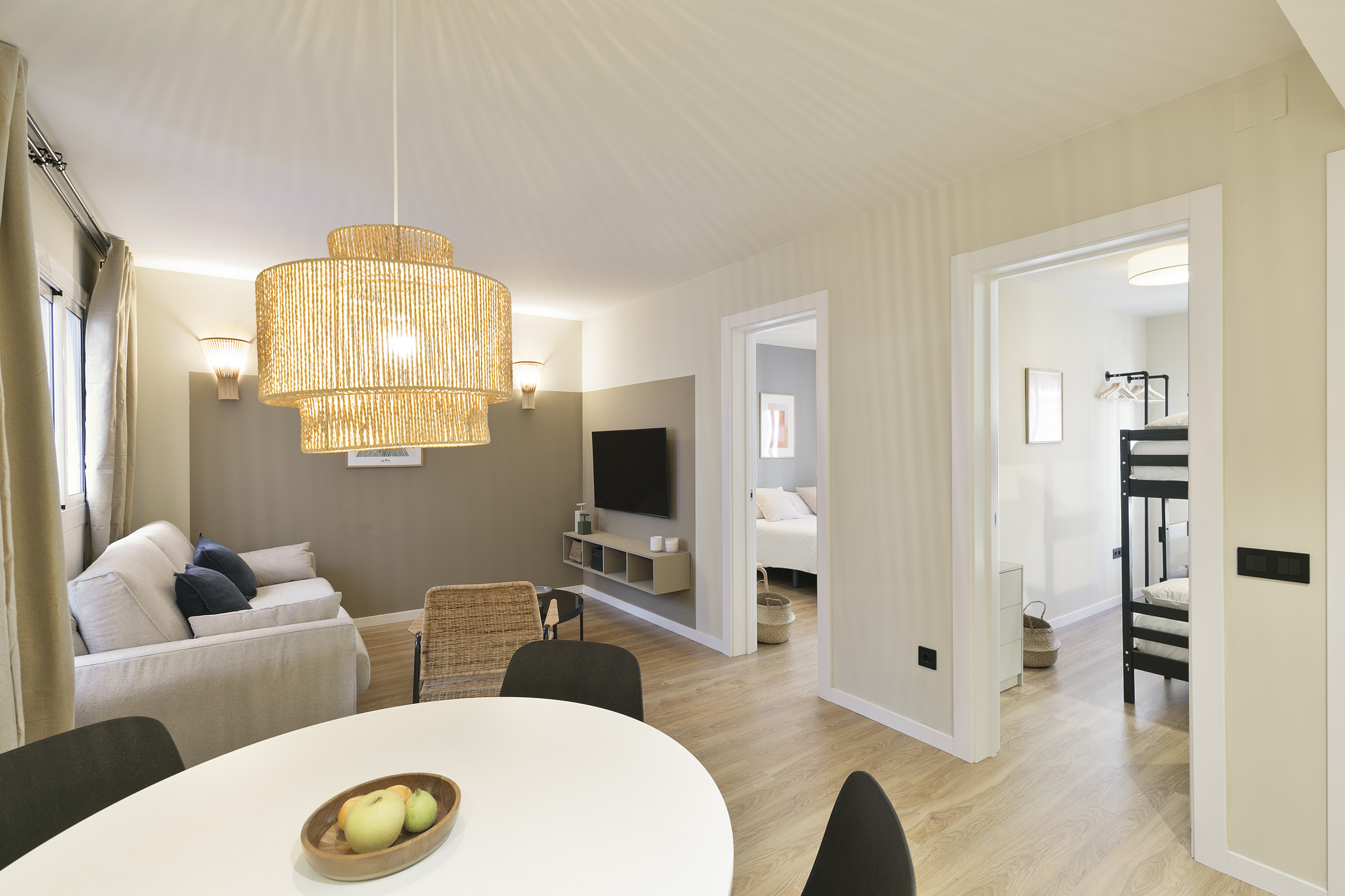 Description Fully-equipped 2-bedroom apartment, just a 15-minute drive from Fira Barcelona Gran Vía. The Space This accommodation features two bedrooms, one master bedroom with a king-sized bed, and a secondary bedroom with a bunk bed. For extra space, there’s also a convertible sofa bed in the living area available to use. The bathroom comes with a shower and hair dryer. Free toiletries and towels are provided for our guests. The kitchen has all the necessary appliances to prepare a quick meal or a delicious breakfast during your stay. Optional services are available upon request (depending on availability)—for the comfort of those travelling with their little ones, a cot can be arranged for free, while extra cleaning & towels are at an extra cost. *Please bear in mind that the photos displayed serve as a visual reference and the layout, design and furniture of your accommodation may vary. Guest Access The entire unit is for your private use. Make yourself at home! Just keep in mind that you are sharing the building with other guests/neighbours, so please respect the quiet hours from 22:00 to 08:00 and the no-smoking policy throughout the property. Neighborhood Just outside the city line of Barcelona, L'Hospitalet de Llobregat ensures easy access to Gaudí’s city's most iconic attractions. Known for its diverse community, it features a mix of residential and commercial areas. The area has numerous parks, making it a pleasant environment for families and individuals. Key attractions include the renowned Gran Via 2 shopping center, as well as various cultural venues and local restaurants showcasing local cuisine. Well-connected by public transportation, L’Hospitalet de Llobregat ensures convenient travel to central Barcelona, major exhibition centers like Fira Internacional de Barcelona, and iconic landmarks such as Camp Nou, home to FC Barcelona. Additionally, its proximity to El Prat Airport makes it a strategic location for both visitors and business travelers. Interaction We are just a phone call or message away, available 24/7 to ensure your stay is as comfortable as possible. You will be able to self-check in upon arrival