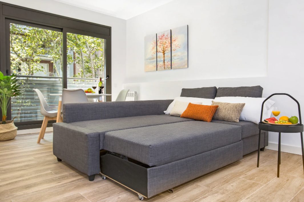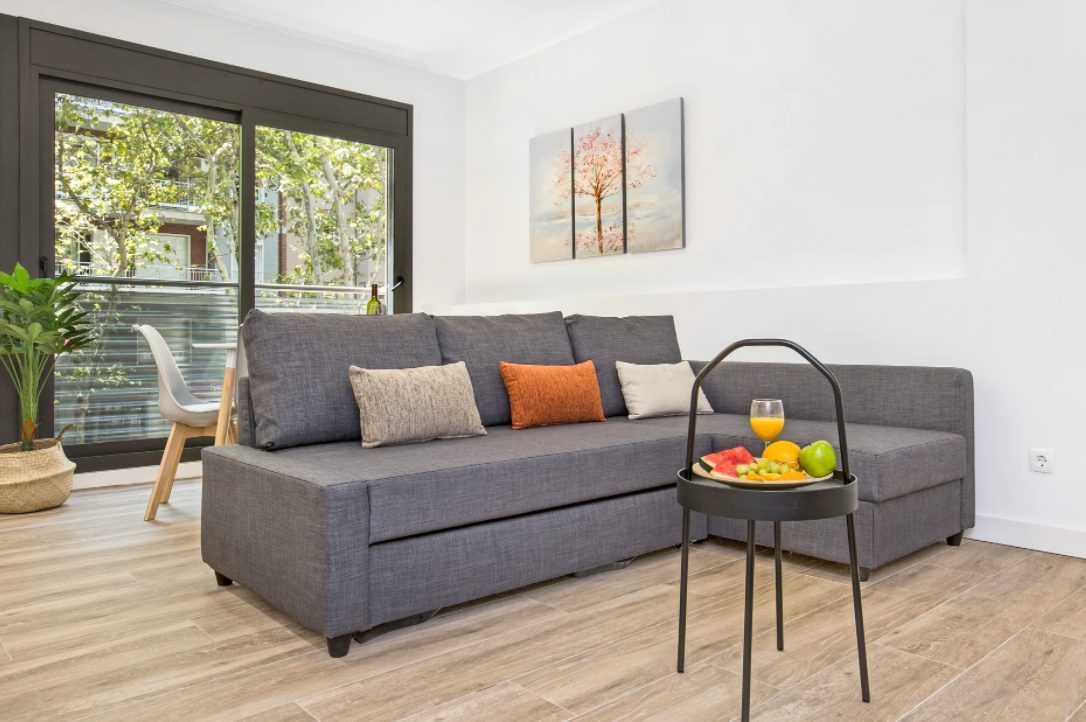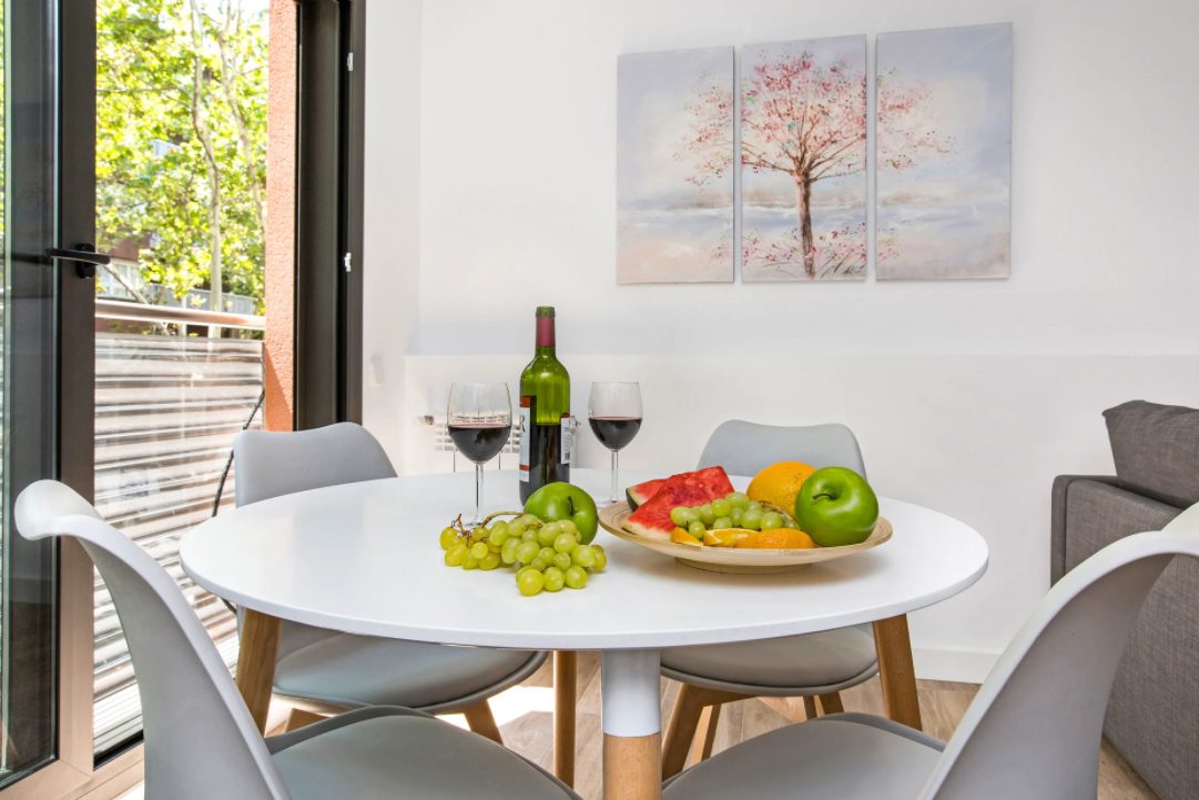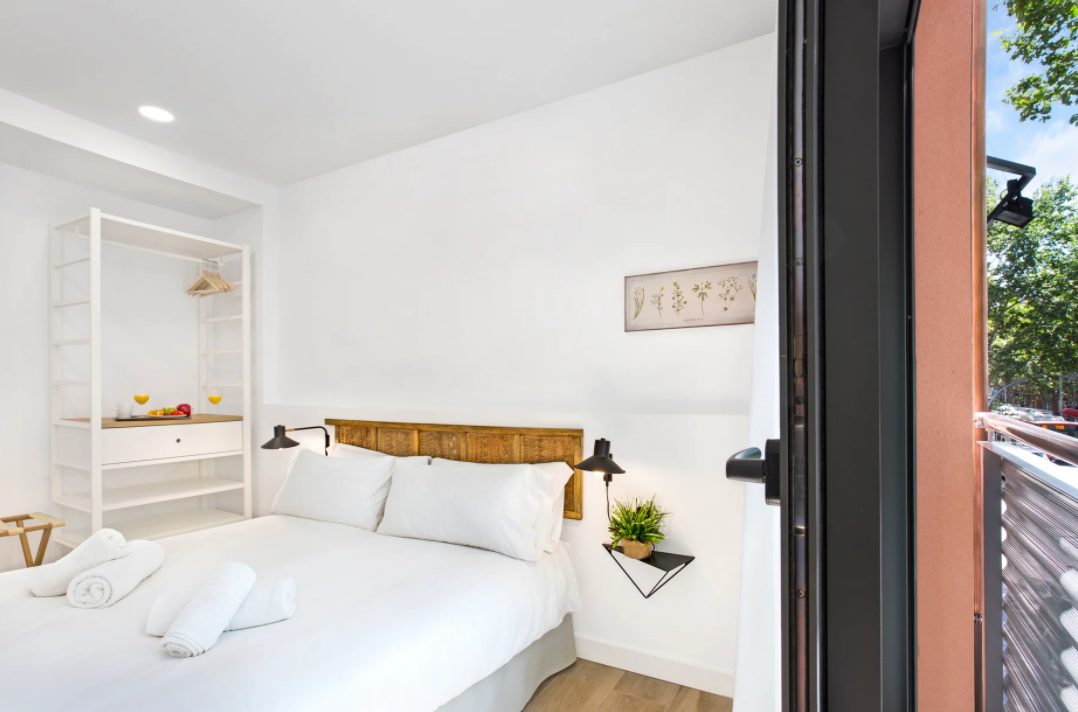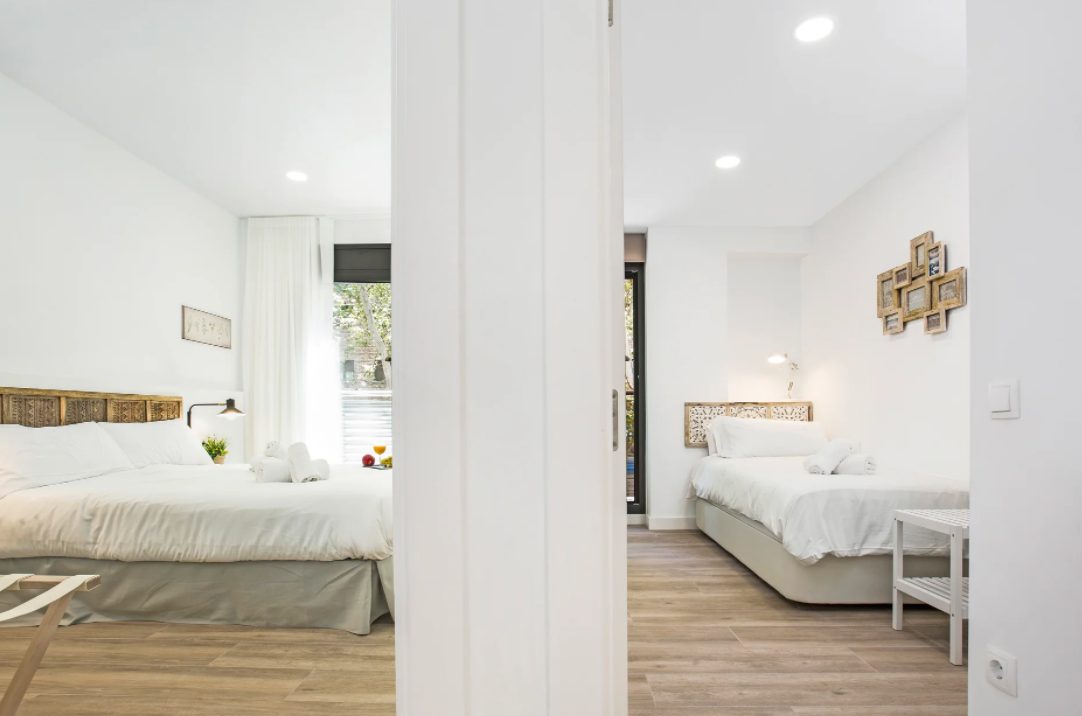 Away from the swarming tourists in the Gothic Quarter, experience a more authentic side to the city at Mediterranean Barcelona Apartments in Sant Andreu. On this vibrant main road, just six minutes from the Fabra i Puig metro, guests can find an eclectic mix of boutiques, bars, cafés, and local attractions. Here, travelers can find wonderfully modern and stylishly designed floorplans. While understated, there are sure to be decorative touches that catch the eye, such as carved wooden headboards, minimalist furnishings, and white walls throughout. Enjoy a fully equipped kitchen, washer in-unit, and all the comforts of home at Mediterranean Barcelona Apartments.