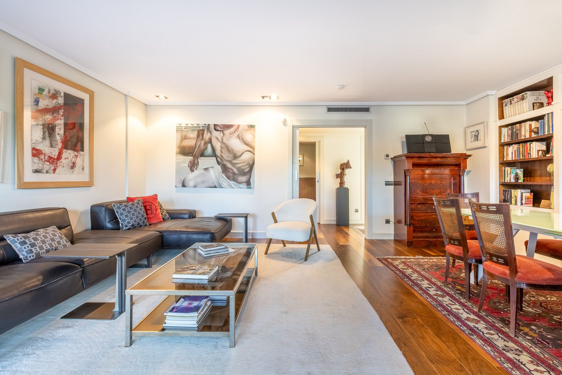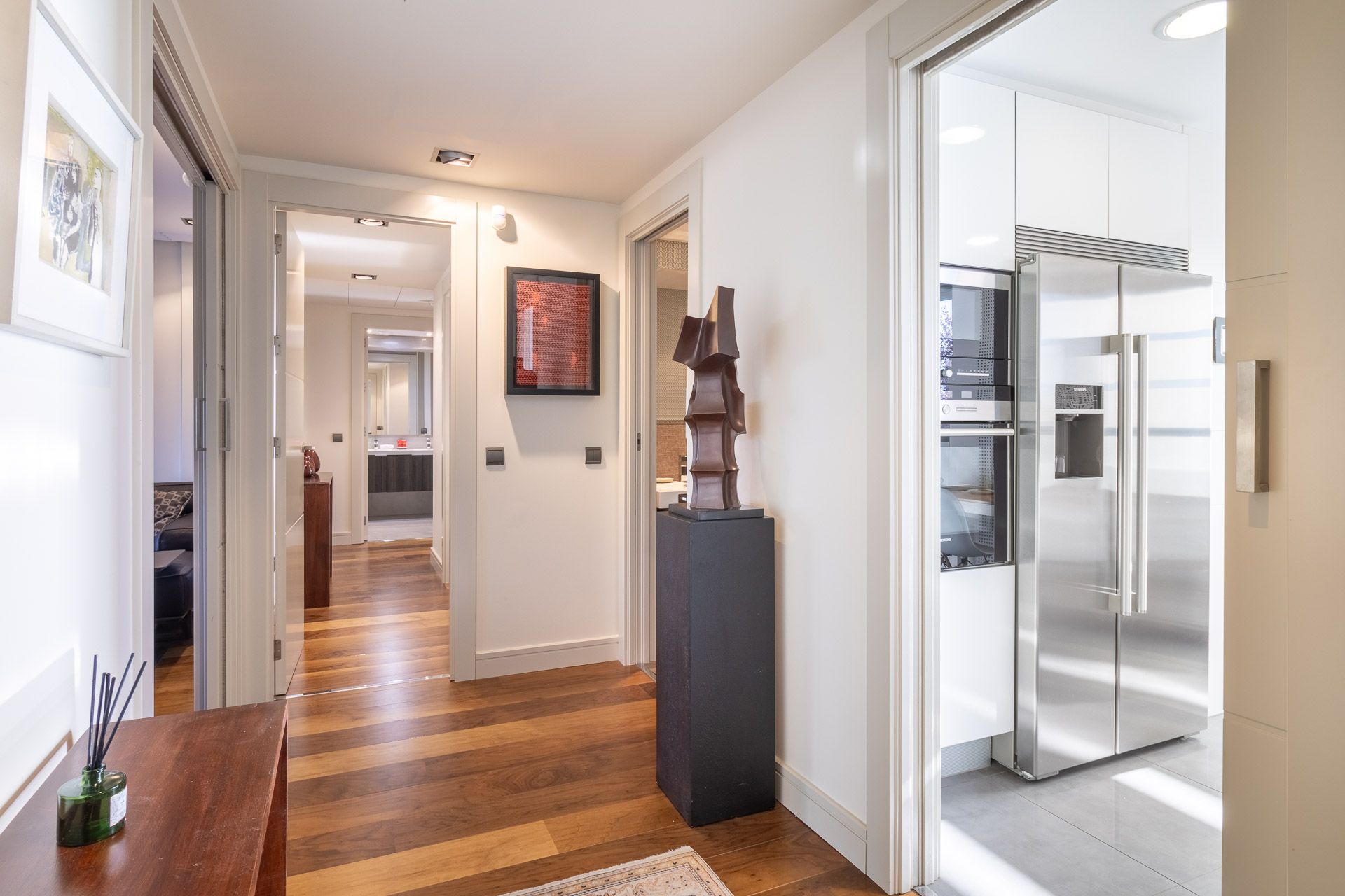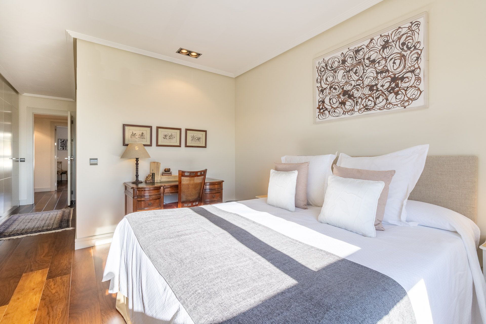 Apartment located in the exclusive urbanization El Encinar de los Reyes. This first floor apartment is in an exclusive urbanization on the outskirts of Madrid. It offers an oasis of tranquility with three double bedrooms, which means plenty of space for family or guests. With two bathrooms, convenience is the order of the day. What really stands out in this apartment is the great silence. What an elegant way to enjoy the fresh air and relaxing views! In addition, with a careful decoration and large windows, natural light floods the space, creating a cozy and bright atmosphere. The urbanization El Encinar de los Reyes is located next to La Moraleja. Located in a privileged natural environment, in about 20 minutes you can be in the Plaza de Castilla. In addition, the urbanization has a leisure area, restaurants, and shopping centers.