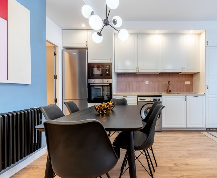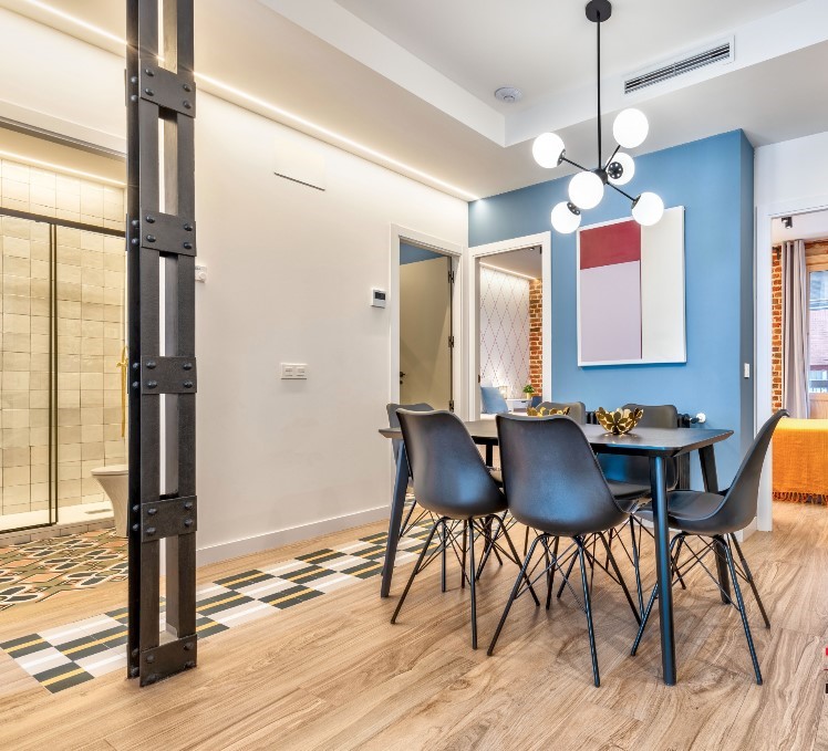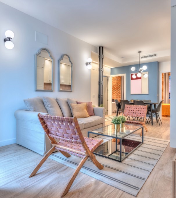 Located on four roads in an area of the Tetuán district. Known for its emblematic road intersection, it houses a mix of shops, restaurants and homes reflecting the characteristic urban diversity of Madrid. It offers a diverse cultural strip, highlighting the Tetuán market for a local culinary experience, while in architecture it includes modern and historical techniques, in addition, the proximity to the Rodríguez Sahagún Park provides outdoor leisure options that can be complemented with the numerous events and cultural activities that this area of Madrid offers. Apartment: This spacious apartment with capacity for 8 people is located on the first floor of a building without elevator. It offers three cozy bedrooms, each equipped with a double bed for a comfortable rest. The two full bathrooms ensure comfort and privacy. The spacious living-dining room features a double sofa bed, providing flexible options for occupancy. The kitchen, with a modern design and fully equipped with kitchen utensils and different appliances, invites you to prepare delicious meals with family or friends. Equipped with air conditioning and central heating ensuring a pleasant environment in any season. In addition, connectivity is guaranteed with WIFI access. This space offers amenities for a comfortable stay. The crib is subject to availability. Please give a maximum of 5 days notice.