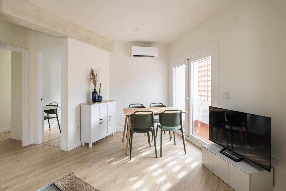 Located in the Tetuán district, you will find our two-bedroom apartment for rent in Madrid. With a size of 45m2, this fully furnished monthly rental features a double bedroom and a single bedroom. In addition to a fully equipped kitchen, in this unit you will have weekly cleaning services, always keeping your space tidy and cozy. Plus, you'll always be connected to work, family, and entertainment thanks to our high-speed WIFI. Perfect for explorers and culture enthusiasts You'll thank us later for introducing you to this two-bedroom apartment that's located in the heart of Madrid's local culture. In this authentic lifestyle, you will live a new adventure every day. Whether you're interested in exploring traditional taverns, sipping cocktails in chic bars, or dancing the night away in nightclubs, the energy of Tetouan will soon mix with yours when you live here.