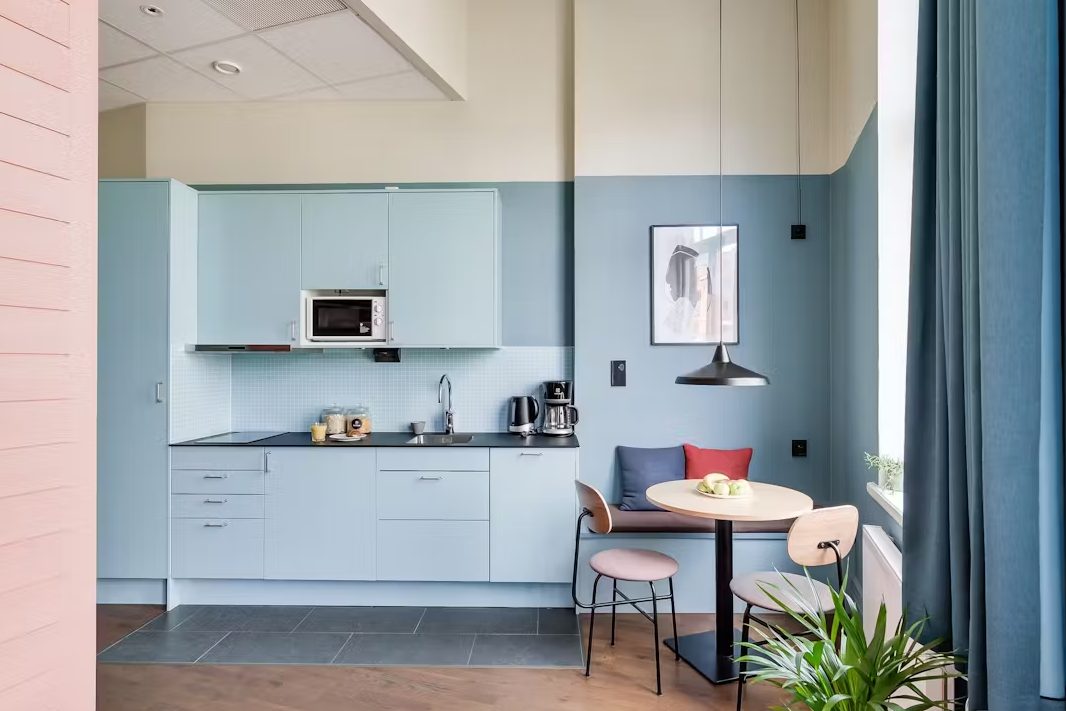 Forenom Aparthotel Malmö Varvsstaden is a new aparthotel (opened in 2019) in a renovated property built in 1912. The property was previously used as the headquarters for Kockums, a shipyard founded in Malmö in 1820. The shipyard was one of the largest employers in the city for a long time. The interior follows a unique design concept by Wingårdhs, which is inspired by the industrial area in Varvsstaden. The apartments are all unique and vary in size 15 - 47 sqm. One of the floors has a ceiling height of 4 meters and offers flexible accommodation with a loft. All apartments have their own kitchen and bathroom. The common facilities include a laundry room and social areas to get in touch with other guests staying at the aparthotel. Access to the apartments is done with a key code, which makes your stay simple and comfortable. Monthly parking can be arranged at extra cost. The aparthotel is in Västra Hamnen, close to the city center and a short walk to the Central Station. The surrounding area offers several grocery stores and restaurants, a gym and other amenities. In a few minutes you will reach the Nordic Sea, where you will find a wonderful esplanade. Public transport runs by bus and train to and from Central Station. A train journey to Copenhagen Airport takes just 20 minutes.
