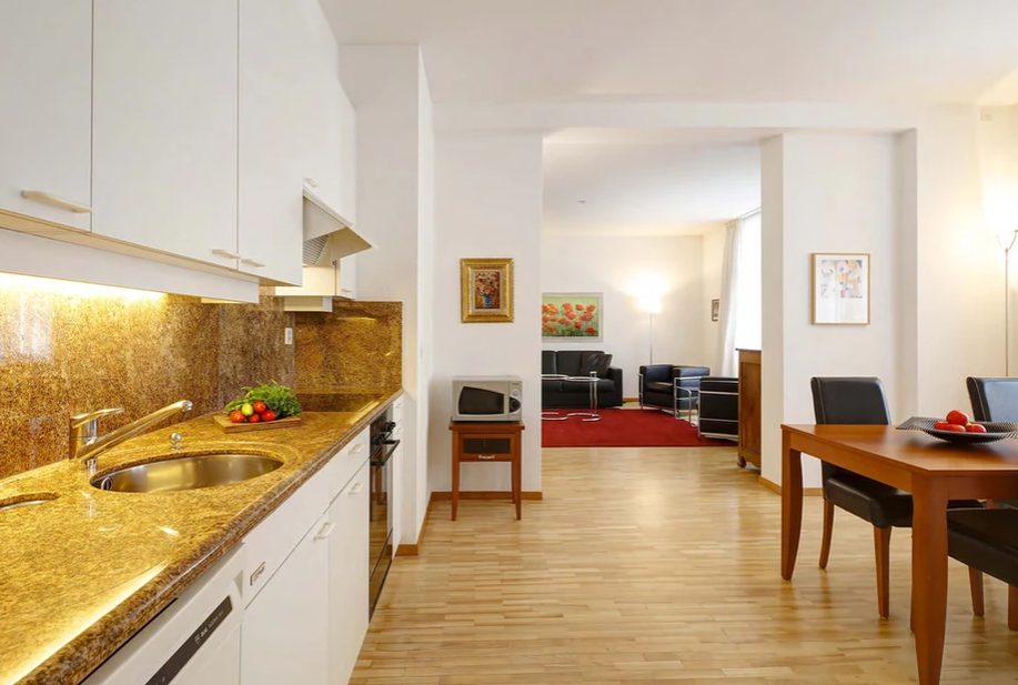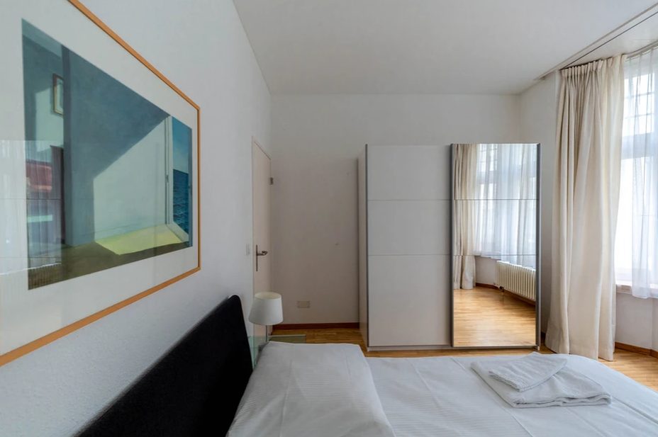 Very bright and spacious 1BR apartment with high standard furnishing and a fireplace. The apartment is located in a residential neighborhood, just down the street from the Opera House and close to the lake side promenade. Grocery shopping is nearby.