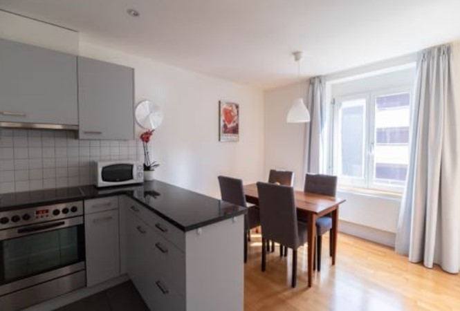 Fröhlich is a lovely one bedroom apartment in the Seefeld area. Through its very good lay out, the flat has got a cozy and at the same time practical charm. There is a washing machine and a dryer in the flat, as well as a beautiful balcony. The bathroom is big, and the lounge is very comfortable with a dining area. Also the bedroom offers a spacious and comfortable atmosphere. The neighborhood is very popular and central. It offers a countless number of options for shopping, eating and drinking or simply spending a good time. The tram station Föhlichstrasse is right at the door and the train station Stadelhofen with connections to all parts of Zurich can also be reached quickly.