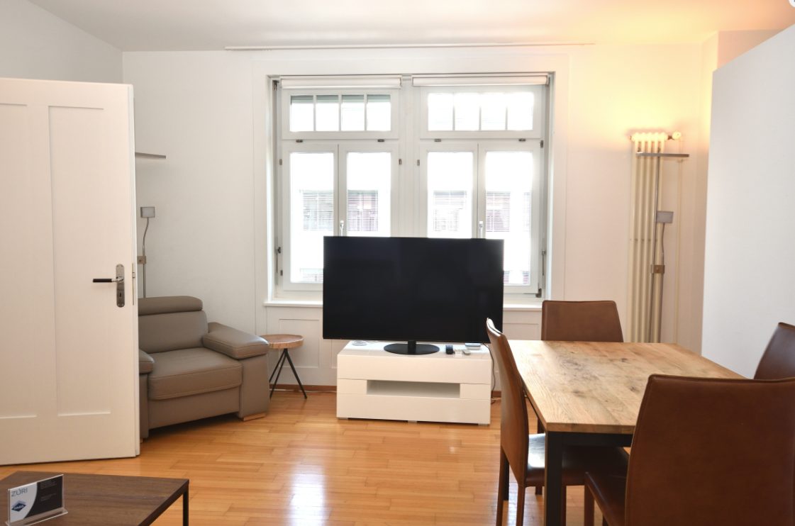 This apartment is centrally located, close to the lake and Bellevue. The Höschgasse stop can be reached in a few minutes. Tram 2 runs via Bellevue to Farbhof in Altstetten. Tram 4 runs via Bellevue to Altstetten Nord station. Bus 33 runs via Schaffhauserplatz to Albisriederplatz. Bus 912 and 916 go to Küsnacht ZH. The apartment is modernly furnished and fully equipped. The separate kitchen and bathroom meet today's standards. The laundry room is located in the basement. Included in the price is a bi-weekly cleaning (weekly on request), a change of bed and a and bathroom linen, as well as costs for electricity, heating, hot water and Internet (WIFI).
