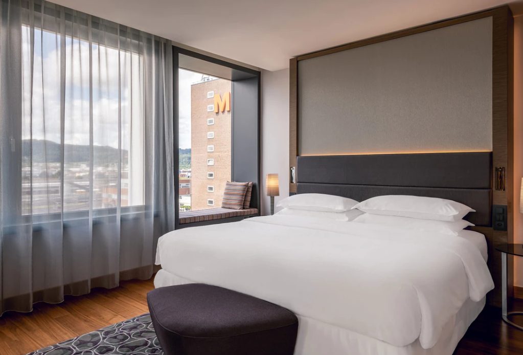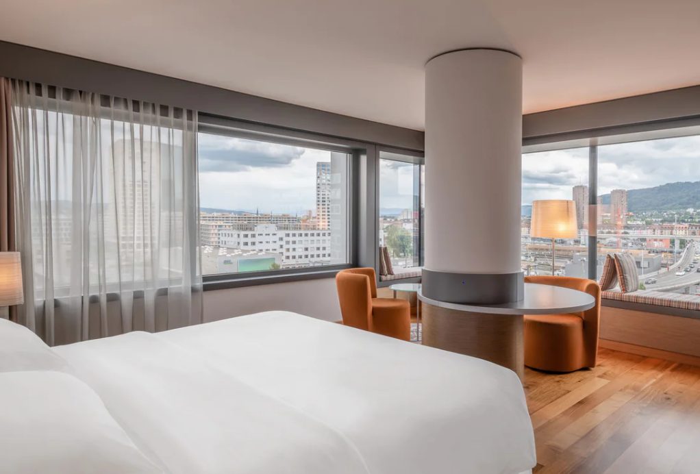 Sheraton Zurich Hotel is the new gathering place in Zurich. Experience Zurich as you have never experienced it before! Our 4 star hotel is the perfect starting point for a stroll through the area and its trendy shops and bars. Sheraton brings people together. Meet the young and cosmopolitan neighborhood in our bar NUOVO or at the Route 26 Steakhouse. Our modern hotel is located just a few minutes away from the city center and the central station. The tram station Toni-Areal is located directly in front of the hotel. Our cozy rooms and suites, some with impressive views over Zurich, are your place of rest and relaxation in the lively Zurich West district. Whether it is a seminar with an accompanying entertainment program, a small meeting or a private event, there are 8 light-flooded, flexible meeting rooms for up to 230 persons and ample parking space make your event shine at our business hotel.