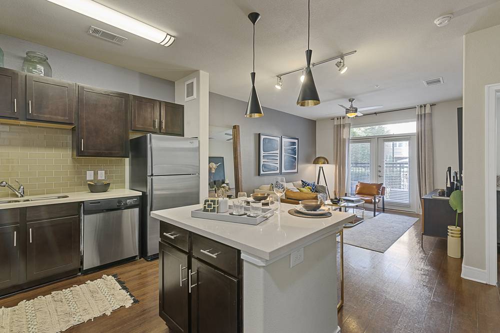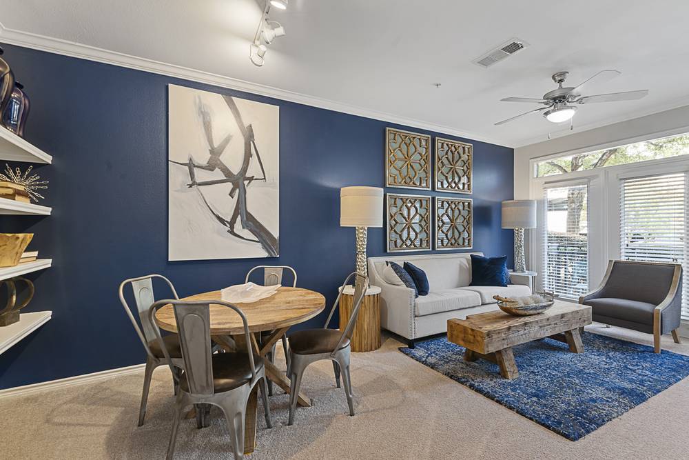 Nestled in the heart of Downtown Fort Worth, Trinity Bluff & District Urban Apartments combine Texas charm with luxury living. Located in the Trinity District, our luxury apartments have amazing views of the downtown skyline and convenient access to the Trinity River. Amenities include two pools, a gym, lounging areas, electric vehicle charging stations, package lockers and more. Amenities are indulgent at our luxury apartments in Downtown Fort Worth. They start with our two lavish, resort-style pools, which feature built-in loungers and lots of nearby seating. There are two fitness centers on site as well, each including multiple cardio and weightlifting machines, as well as room for floor exercises and plenty of windows that let in natural light. Other amenities of our luxury Fort Worth apartments include two business centers, parking garages with charging stations, elevator access, an outdoor TV wall, a jogging trail and more. We also have a friendly staff and maintenance team—each is ready to assist with any resident needs in a timely manner. We are proud to be a pet-friendly apartment community. We have two dog parks on site and allow up to two pets per home (both cats and dogs welcome; a variety of breeds are accepted). Keeping with the pet friendly theme, we even feature a pet spa on site. We are close to several parks and jogging trails - making it easy and convenient for you and your pet to exercise outdoors. Experience the best of Downtown Fort Worth living. !