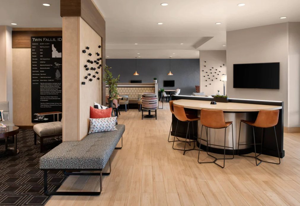 Located just 8 miles from Magic Valley Regional Airport, TownePlace Suites by Marriott Twin Falls is surrounded by natural beauty. Take a hike along Snake River, then stop to have a family picnic with picturesque views of Shoshone Falls Park and Perrine Bridge. Prefer to get active indoors instead of in the fresh air? We have a 24-hour fitness center featuring cardio equipment and free weights, and our indoor pool is heated with an adjacent whirlpool. Our flexible event venue can hold a training seminar or company meeting and boasts AV equipment and catering options. We can also host weddings, bridal showers, and birthday parties. Relax in one of our soft beds with plush bedding and watch a recent blockbuster with our premium movie channels. You can enjoy a full home cooked meals with a full kitchen in every room. .