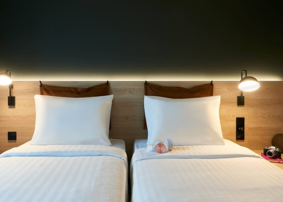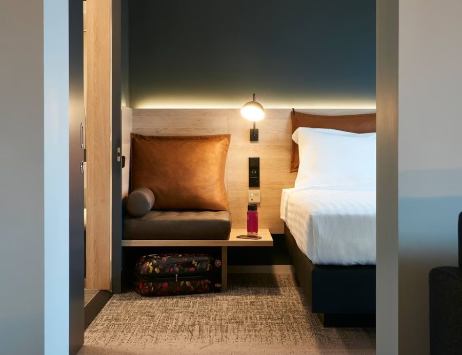 What makes Moxy Chester a stylish and playful hotel at its heart? Is it the bright and open lobby layout paired with contemporary furniture, or the ''Plug and Meet'' communal areas providing modern, ergonomic seating, large writing walls and televisions for presentation projection? Maybe it's the fact that all 186 bedrooms are equipped with televisions, en-suite bathrooms, and USB charging points galore? We're not so sure, but we know it works! At Moxy Chester hotel, we don't take ourselves too seriously, but we're serious about travellers needs and know how to make guests comfortable and relaxed during their time with us. Our hotel is pet friendly and welcomes trained pets for a fee. The lobby of our Hotel in Chester City Centre also boasts a state-of-the art video wall and 24/7 Food & Beverage offering a wide selection of Grab and Go snacks and drinks.
