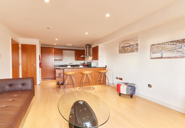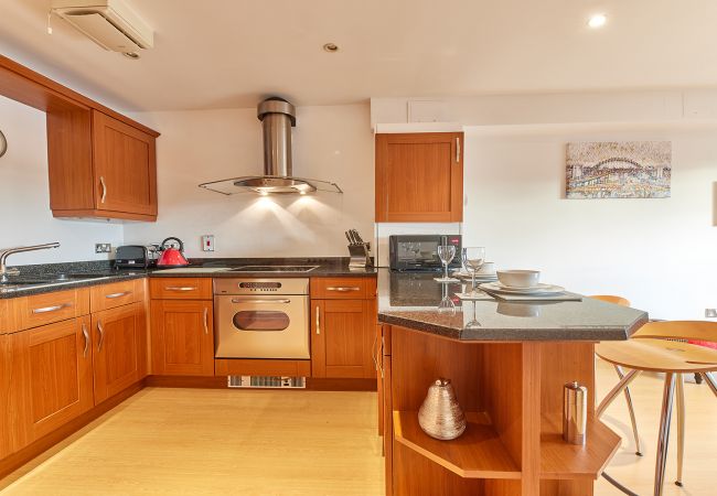 Superb location close to the Quayside with amazing river views. These stylish apartments provide an excellent base as it is only minutes’ walk to the Quayside where you can find a wide selection of International restaurants, theatres, and supermarket. The Millennium Bridge provides a spectacular view at night when lit. A short five minute walk will have you in Newcastle’s bustling City Centre where you can sample all of what this beautiful city has to offer. The apartment in Newcastle Upon Tyne has 1 bedrooms and has capacity for 2 people. The apartment is 37 m². The accommodation is equipped with the following items: iron, internet (Wi-Fi), hair dryer, central heating, garage the same building, 1 TV. In the mixed: gas and electric open plan kitchen, refrigerator, microwave, oven, freezer, washing machine, dryer, dishwasher, dishes/cutlery, kitchen utensils, toaster and kettle are provided.