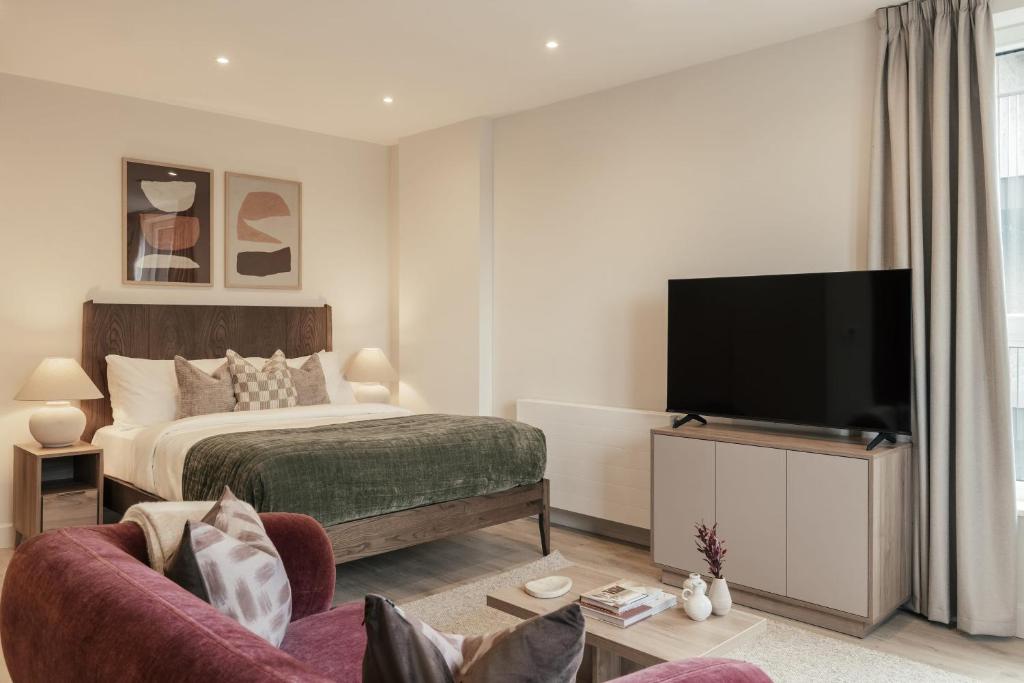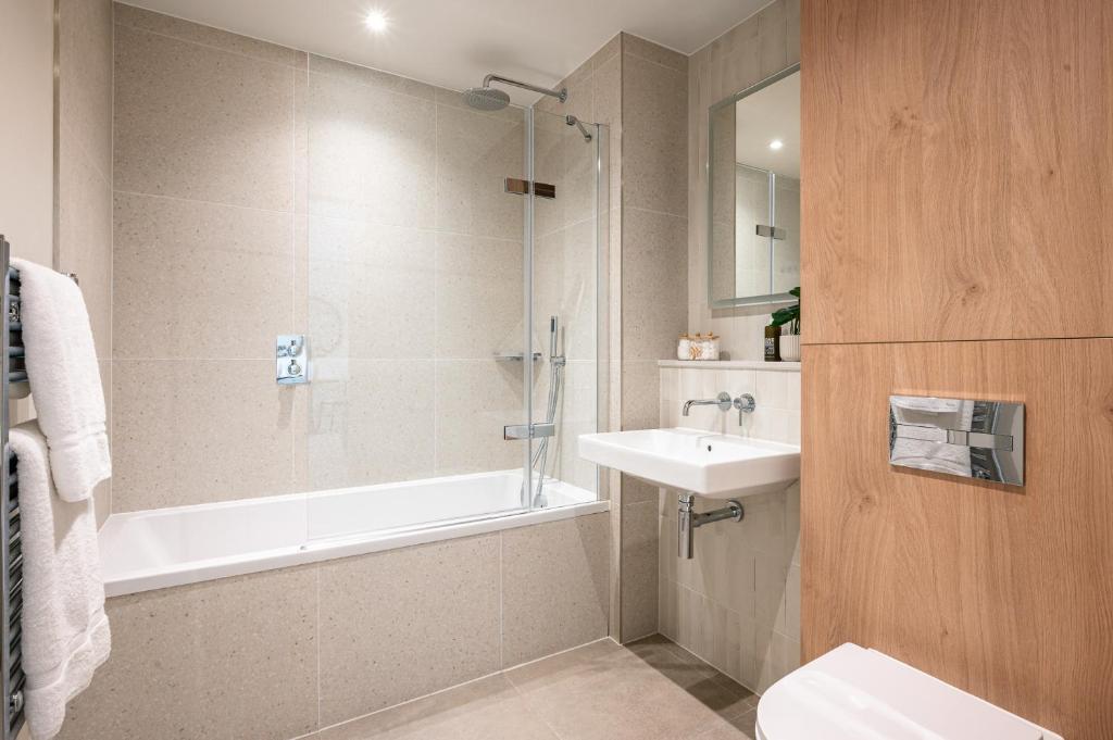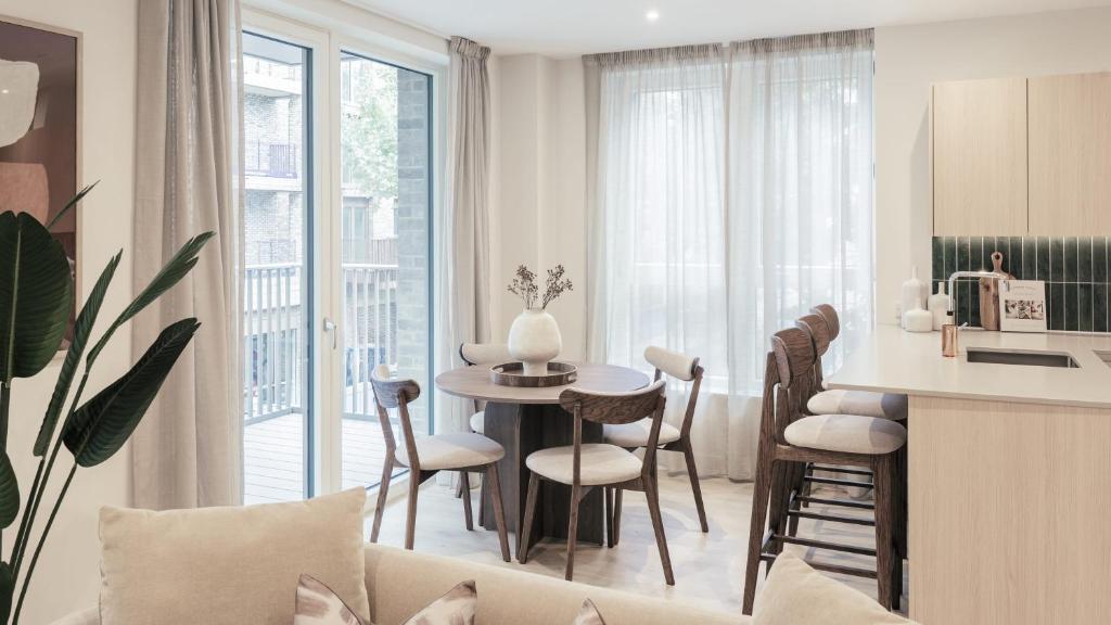 Experience modern living in the heart of one of London's coolest neighbourhoods at Bermondsey Apartments. These contemporary one and two bedroom apartments offer a stylish base for long stays, business travel, or student life - perfectly placed near Tower Bridge, Borough Market and several of London’s leading universities. Bermondsey's one-bedroom apartments offer comfortable, practical living with generous storage - ideal for solo travellers or couples. The two-bedroom apartment includes floor-to-ceiling windows, an ensuite bathroom and a private balcony - perfect for those wanting a little extra space. Each premium serviced apartment at Bermondsey Apartments is thoughtfully designed with comfort and style in mind. Enjoy a fully-equipped kitchen stocked with pantry essentials, fast free Wi-Fi and secure, self-check-in. Whether you're staying for work, study or relocation, you’ll find everything you need for a seamless experience. Residents also have access to a range of premium amenities. Entertain friends in style on the rooftop terrace or private dining room. Catch up on some work in the co-working space. Keep active in the onsite gym or relax in the communal games room (coming 2026). Bermondsey itself is a vibrant South London neighbourhood set along the River Thames, just minutes from London Bridge. From Borough Market and the White Cube gallery to buzzing cafés and co-working spots on Bermondsey Street, this neighbourhood is full of culture, food, and creativity. The area is also exceptionally well connected. Bermondsey Underground Station is just a short walk away, offering direct links to Canary Wharf, London CBD and the West End. With excellent transport options and close proximity to top universities and major business districts, Bermondsey Apartments are an ideal location for study, work and leisure travel.