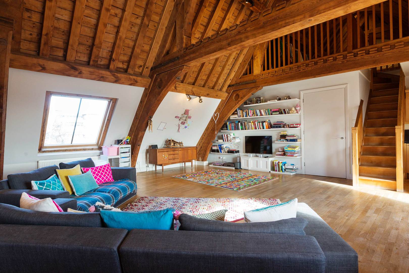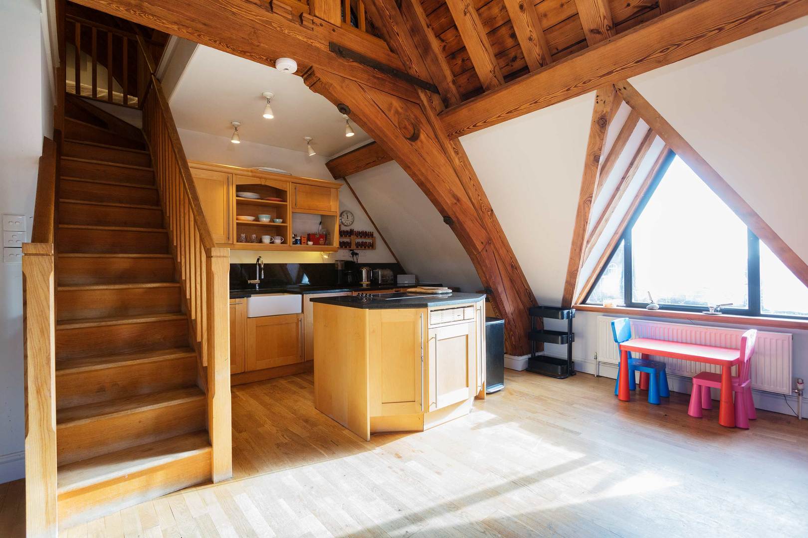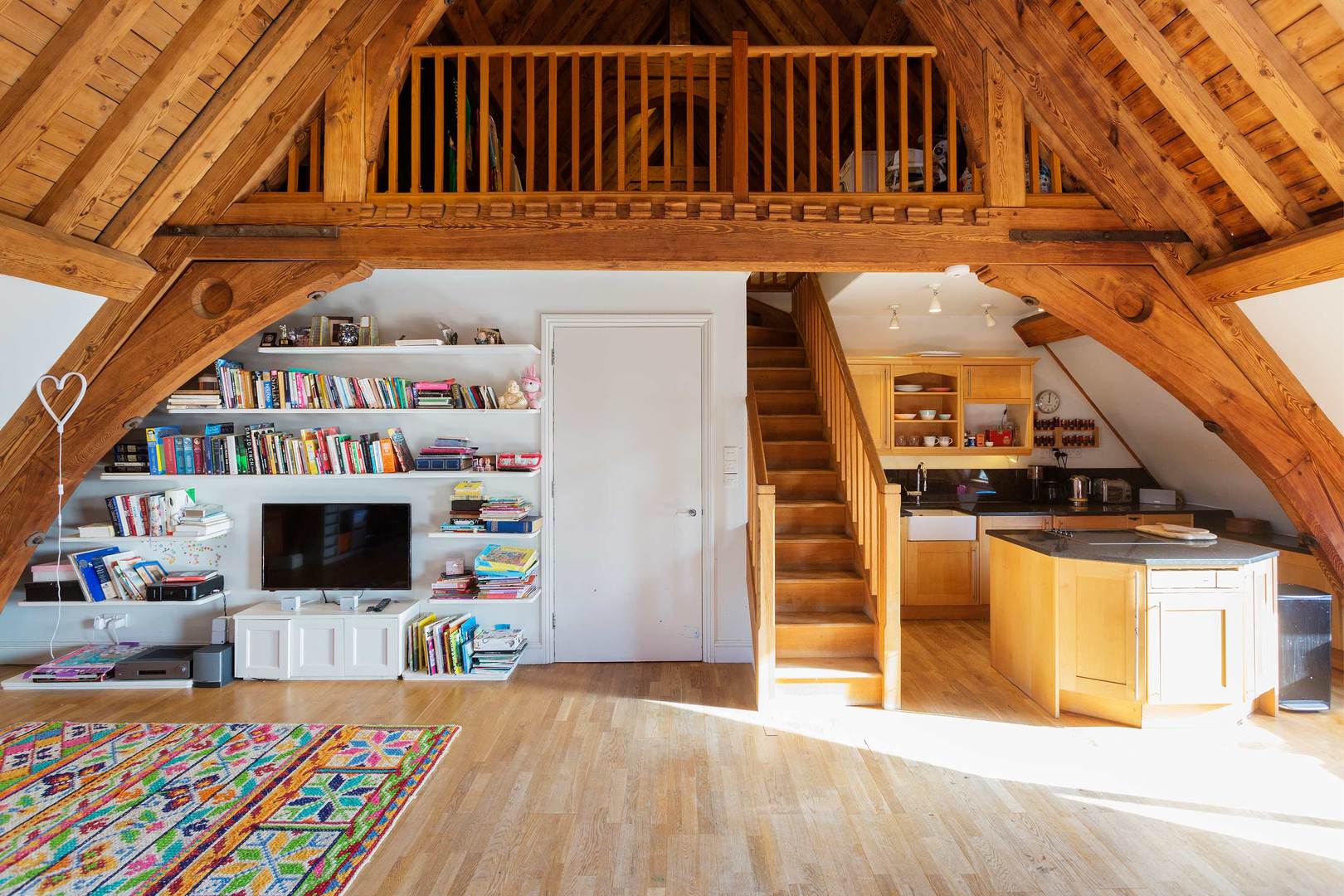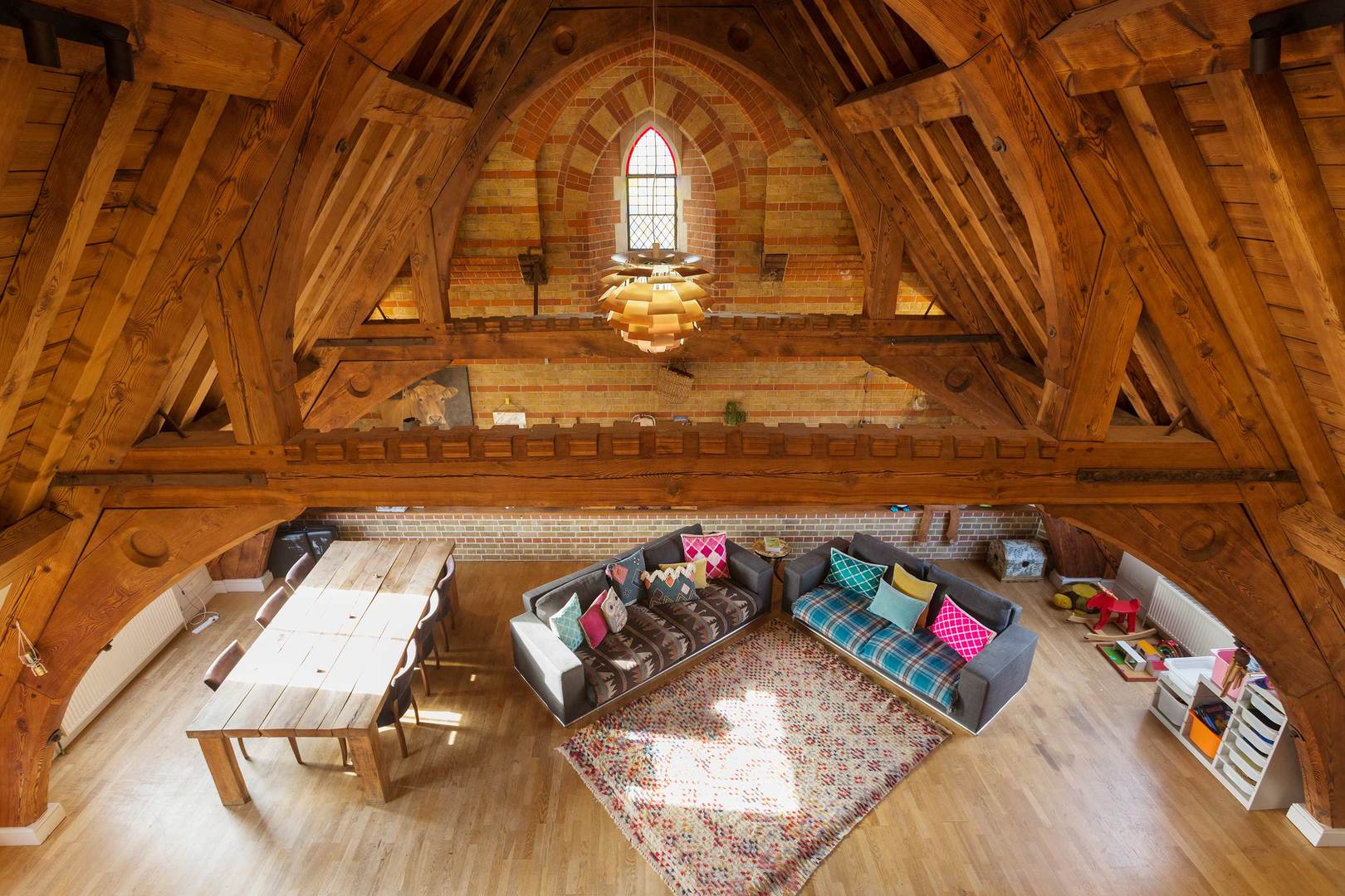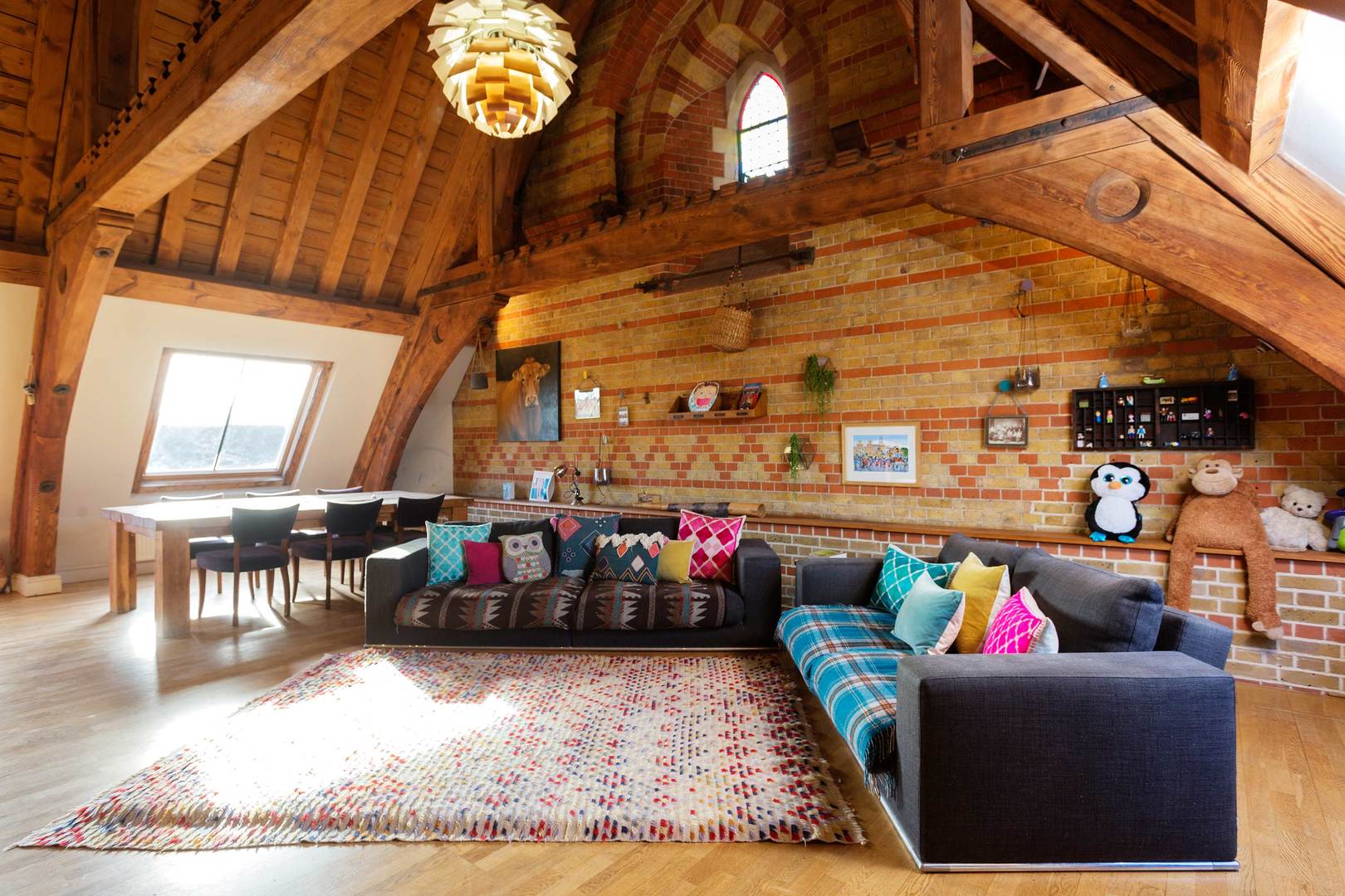 Looking for something a little elevated? It doesn't get loftier than the apex of a converted church. Nestled in the eaves of a converted church, with its grand vaulted ceilings, wooden beams, and exposed brickwork, this mezzanine apartment is as original as they come. Just minutes from Archway Station, you'll be well-placed to explore the city, as well as the local delights of Hampstead Heath and historic Highgate Cemetery nearby.