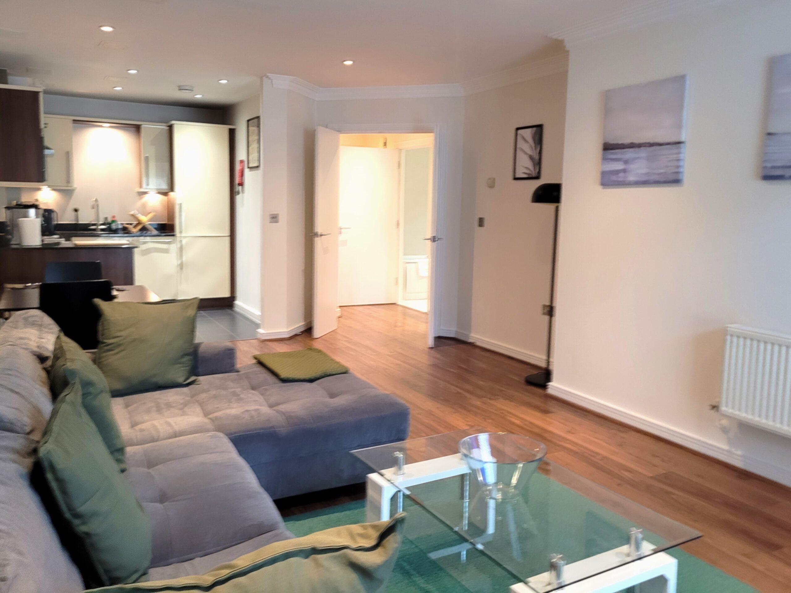 These modern 1 bedroom apartments are in the best location in Surbiton if you’re looking for a quiet spot right in the centre of town. It’s set-back from Victoria Road aka Surbiton High Street hence the quiet plus you’re surrounded by restaurants, cafés, pubs and shops. It’s a 7 minute walk from the riverside and a 3 minute walk from Surbiton rail station which is 17 minutes from Waterloo by train. There are also direct train services from Hampton Court, Thames Ditton, New Malden, Raynes Park, Wimbledon, Clapham Junction, Vauxhall, Esher, Walton-on Thames, Weybridge, Woking and Guildford. The Surbiton one beds feature a parking space and superfast 200mbps wifi. Other apartment features include a coffee machine, a 50 inch Smart TV, a washer/dryer, a dishwasher, Bluetooth speakers, a sofa and a king size double bed. Surbiton is a pleasant place to live, is family-friendly and with thanks to its neighbour Kingston upon Thames has so much to offer in terms of culture, nightlife, top schools, great shopping, history and idyllic riverside views. Surbiton provides the perfect blend of picturesque suburbia with very fast trains into central London. Surbiton is just over a mile south of Kingston upon Thames, and is west of New Malden, east of Thames Ditton and north of Chessington It’s just a 3 minute walk to Surbiton rail station. The royal borough of Kingston upon Thames is part of Greater London and is 10 miles south west of central London. It’s 2 miles to the A3 and 8 miles to Heathrow airport. Surbiton is convenient for Kingston upon Thames, New Malden, Tolworth, Chessington, Thames Ditton, Hinchley Wood, Hook, Worcester Park, Esher and Claygate.