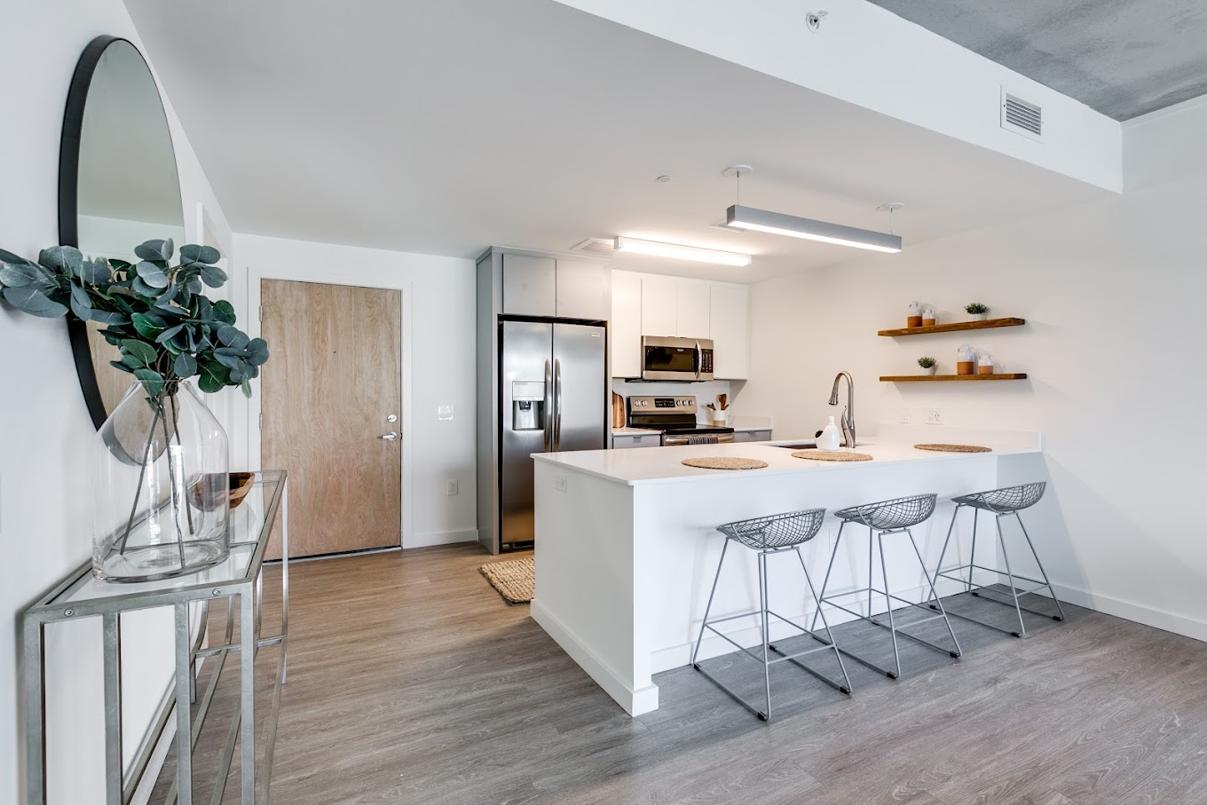 Experience a new level of elegance at The Locks Tower Apartments, where modern design meets unparalleled sophistication in one of the most coveted luxury apartments in Richmond, VA. Our premier high-rise community offers contemporary one- and two-bedroom residences, each boasting upscale finishes and breathtaking city views that set a new standard for urban living. Experience a new level of elegance at The Locks Tower Apartments, where modern design meets unparalleled sophistication in one of the most coveted luxury apartments in Richmond, VA. Live life to the fullest at The Locks Tower Apartments. Enjoy our rooftop pool, relax in our private sky lounge, and stay fit in our fitness center—all with city views. We’ve thought of every detail of modern living, including EV charging stations, secure garage parking, study and business areas, and even a pet spa for your pup. These amenities make our Richmond, VA, apartments the ultimate urban retreat.
