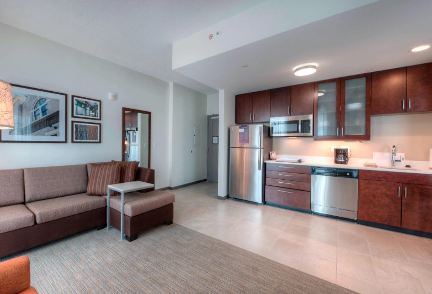 Residence Inn Raleigh Downtown is proud to be a Silver Leed Certified hotel which provides the ideal place to stay in Downtown Raleigh. We are an all-suite hotel that provides our guests a place to relax and room to work. All guest suites include kitchen providing the flexibility for short or long stays. Complimentary full breakfast, state-of-the-art fitness center, free wi-fi, 40-inch HD TV, all maximize your comfort while keeping you close to Raleigh's dynamic downtown scene. Enjoy 10th & Terrace, our rooftop bar and Overlook, our on-site restaurant, or walk to any of the amazing nationally acclaimed local restaurants; visit Raleigh's unique downtown retail and shopping, take in the nightlife and craft breweries, museums, experience live performances at Red Hat Amphitheater and Duke Energy Performing Arts Center (aka Memorial Auditorium). Raleigh's growing business center is at your doorstep, just minutes from several university campuses: NCSU, Shaw, Meredith, Peace College & St. Augustine