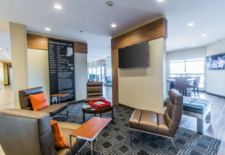 Your home away from home is conveniently located off of I-69 Exit 7A. Only 13 miles away from the Evansville Regional Airport (EVV), we offer amenities to suit each travelers needs. Our pet friendly hotel features fully equipped kitchens, indoor saltwater pool, fitness center, 24 hour market, guest laundry, business center and hot breakfast buffet. Make our space your own with adjustable Elfa closets from the Container Store and our mobile Home Office space. Enjoy our outdoor patio area complete with Weber grills and cozy fire pit. We are closely located to several attractions in the Tri-State area including but not limited to: Deaconess Sports Park, Ford Center, Old National Events Plaza, Tropicana Casino, CMOE, and Victoria National Golf Club. Our hotel is a short distance from many corporate facilities such as Toyota, Alcoa, Shoe Carnival, Accuride, Meade Johnson, Berry Global, Deaconess Hospital and Ascension Health. Book a room, relax, and stay a while!