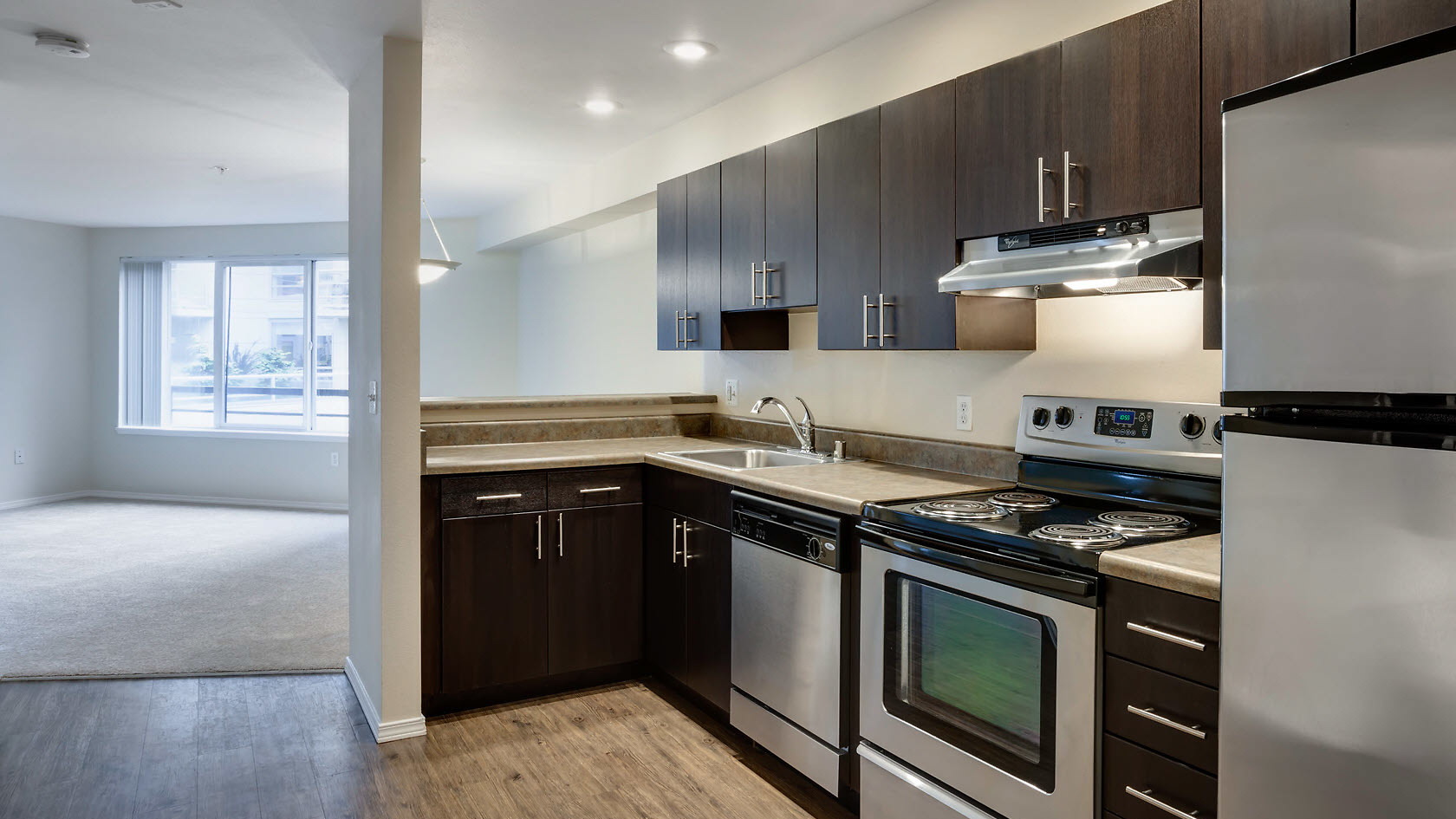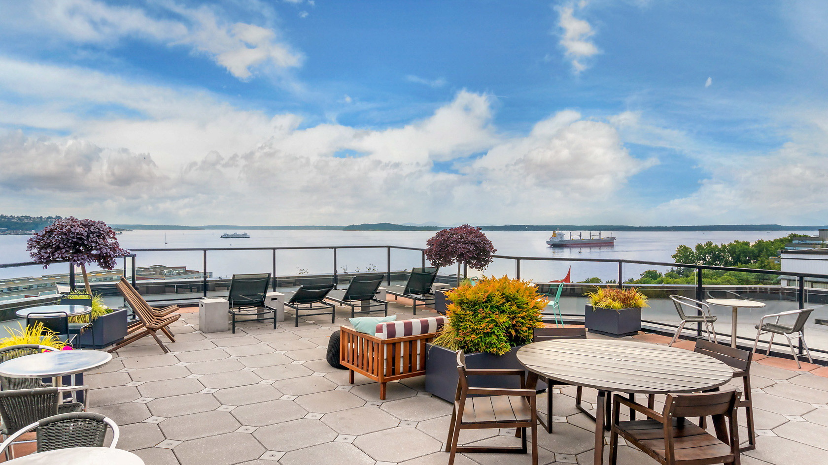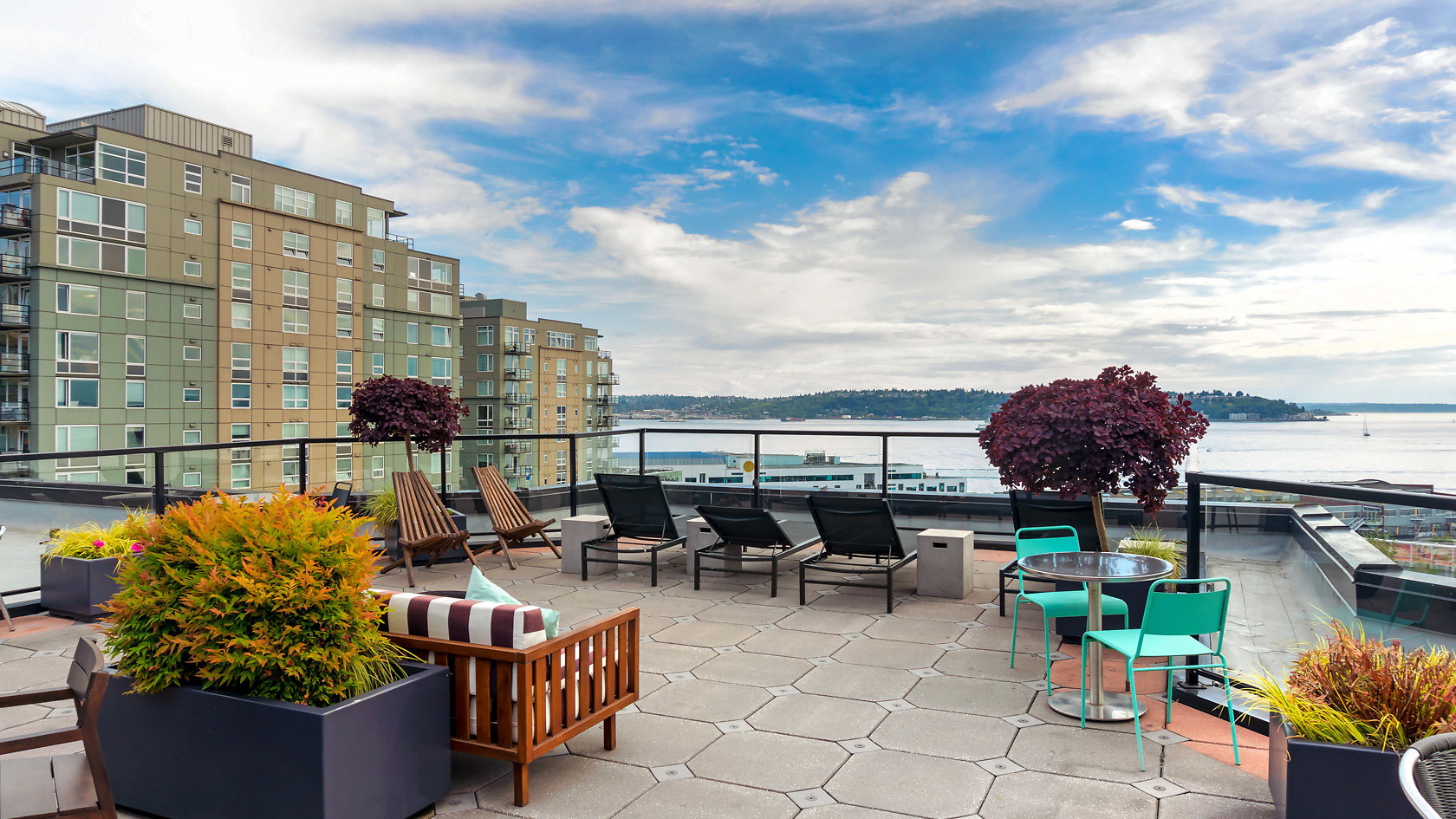 This pet-friendly community welcomes home corporate travelers to stylish interiors and epic views. Each studio, one-, and two-bedroom apartment home features spacious layouts finished in designer style. Sleek cabinetry and stainless steel appliances appoint each kitchen, while wide windows illuminate each home with natural light. Each residence also comes with an in-unit washer and dryer for the ultimate convenience. Just outside guests' doors, thoughtful community amenities await. Get fit in our 24-hour fitness center, take a dip in our indoor lap pool, or unwind in the spa. Perhaps best of all is the rooftop terrace, where you can relax while enjoying beautiful sunset views over the Puget Sound.