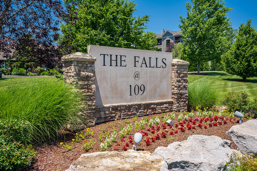 The Falls at 109 is a pet-friendly and gated community situated in Wilson County. Conveniently located off Highway 109, getting around the greater Eastern metropolitan area of Nashville has never been easier. Come home to picturesque views of the rolling hills of Tennessee fused with mountain lodge comfort. Surrounded by lush trees and greenery it’s hard to imagine that this idyllic wooded setting is only a thirty minute drive from downtown Nashville and twenty minutes from the Nashville International Airport. Ranging from one, two and three bedroom apartment homes, you’re sure to find the perfect fit for your next home. With an expansive list of head-turning amenities you’ll never want to leave home. Start that new book and listen to the water trickle down the falls, cool off in the zero-entry pool, or enjoy an afternoon at the poolside cabana with TV, gas grills and fireplace. Take your gym regime to new levels at the 24-hour fitness center or perfect your serve at the on-premise tennis court. Or run around at the playground or bark park with your loved ones. The lifestyle you deserve is waiting for you at The Falls at 109.