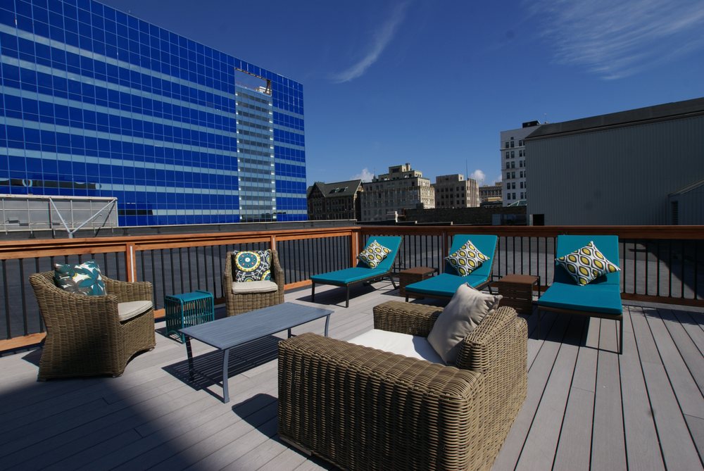 Boston Lofts Boutique Apartments offers true loft living in downtown Milwaukee. Located on the 6th-9th floors of the Historic Boston Store Building, these unique floorplans offer tons of square footage and open layouts for the perfect living experience. Eastern apartments offer Lake Michigan & Third Ward views while the west-exposures showcase gorgeous sunsets and Miller Park through 10 foot windows. Community amenities include outdoor deck with lounge seating, resident lounge, and fitness center.