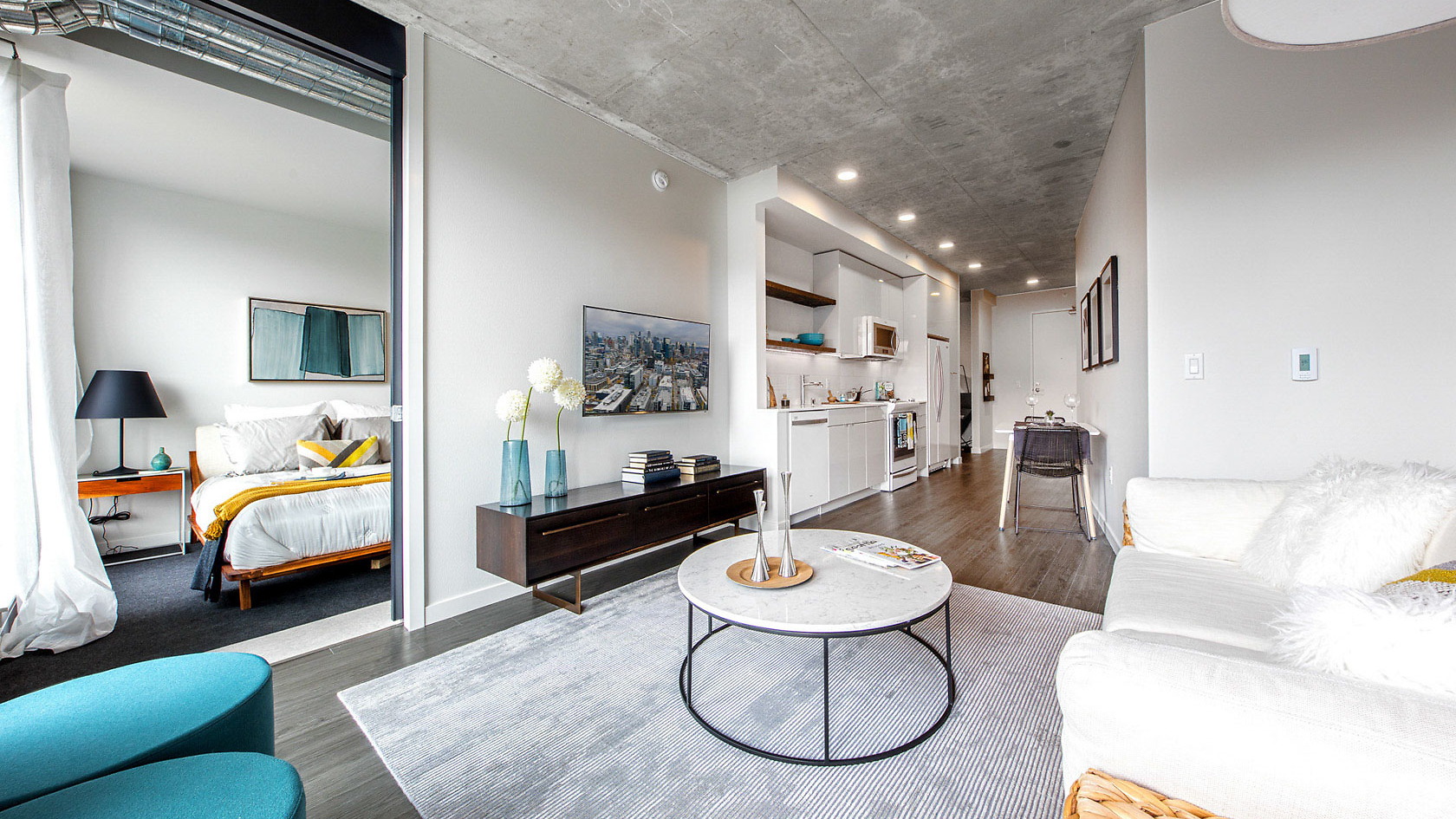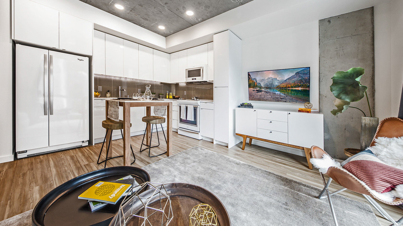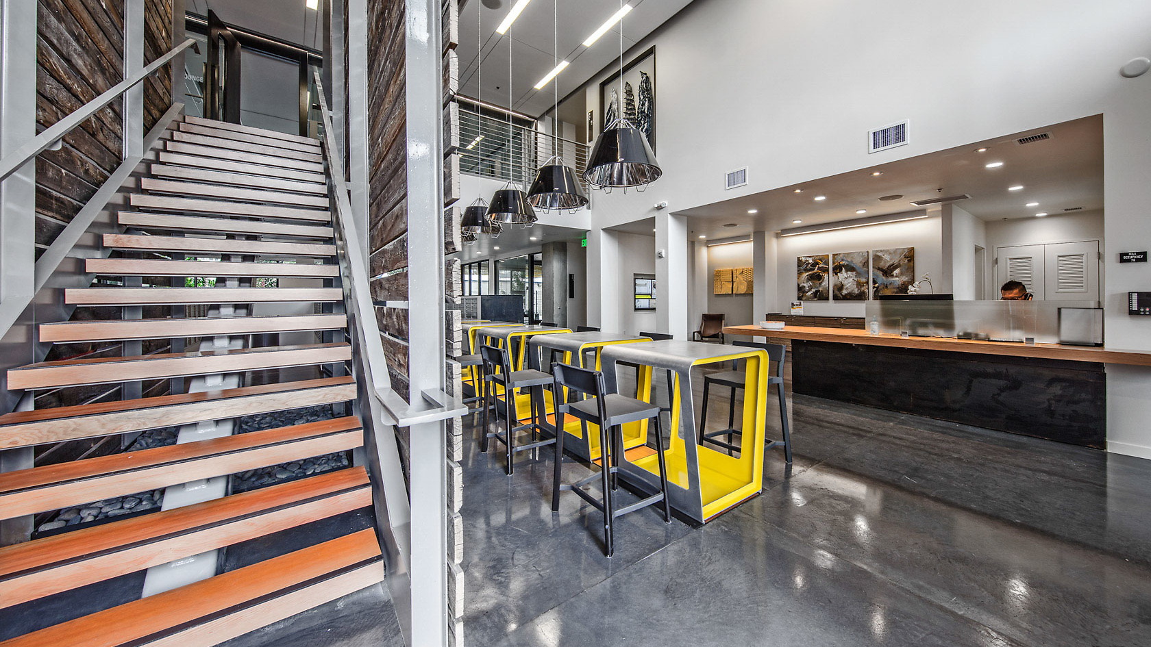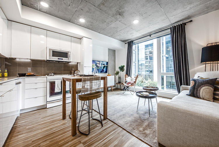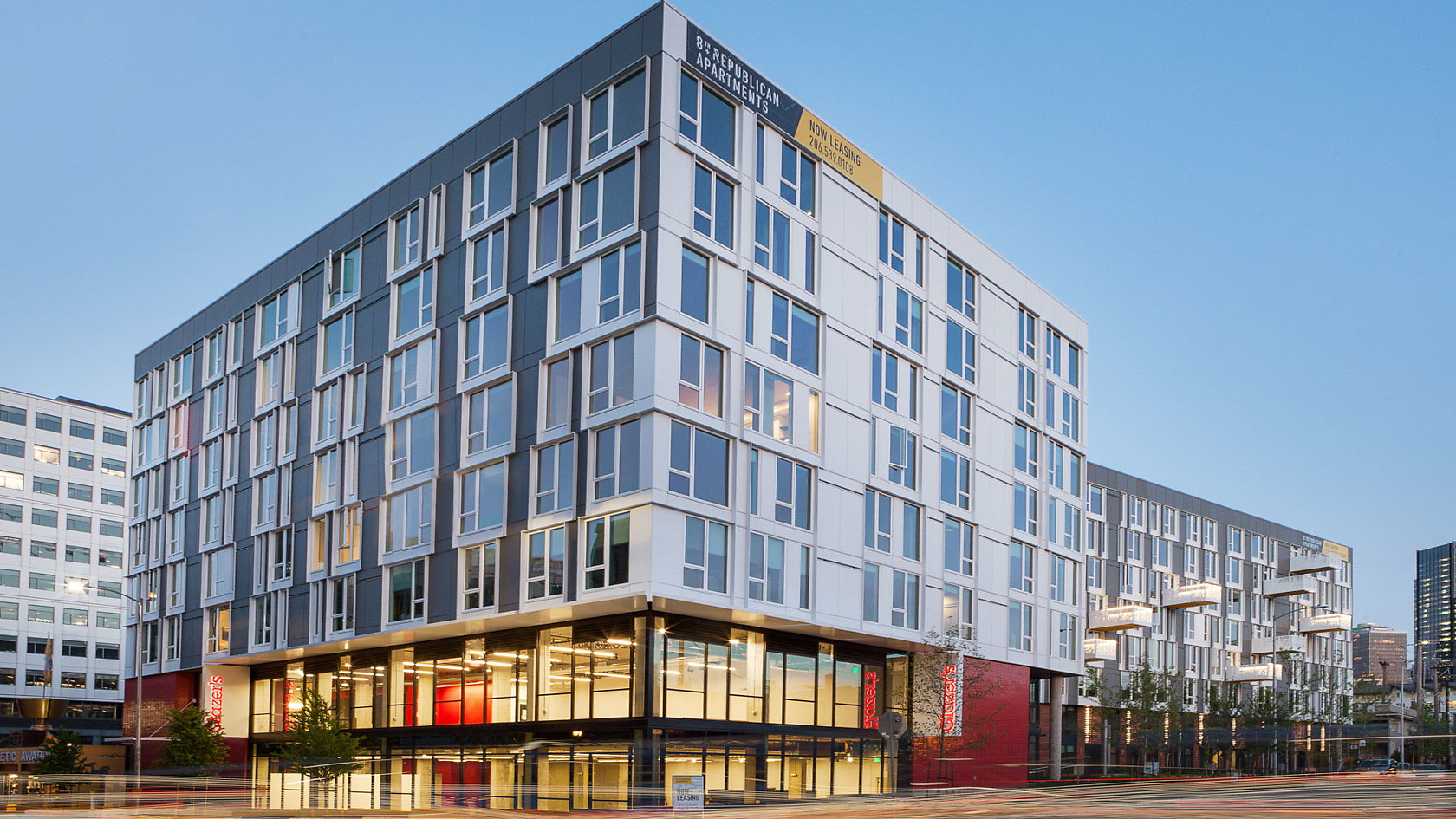 Located in the heart of South Lake Union, 8th & Republican’s amenities include a stepped-roof terrace, west-facing courtyard with landscaping, lounge and conference areas with an indoor/outdoor fireplace, clubroom with a presentation kitchen, shuffleboard, and bicycle parking and repair stations. Apartment finishes include polished concrete, raw steel, and reclaimed wood. This building also has floor to ceiling windows which achieve a bright, airy feel that is both industrial and elegant. 8th & Republican is extremely close to Amazon's HQ and also only 1 block from multiple major transit routes. Make yourself at home at 8th & Republican.