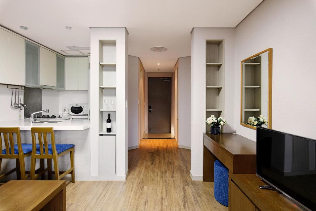 Atrium Vabien II, located in Seoul’s Central Business District, just next to Seodaemun Subway Station, offers rooms with fully equipped kitchens and free WiFi access. Guestrooms at the property come with both heating and air conditioning, and each room has a cable TV and a walk-in shower. The building is located just a stone's throw from Deoksu Palace and Seoul City Hall, and Incheon International Airport is 25 miles away. Guests staying at the hotel can take the airport shuttle bus stop, located in front of the hotel.