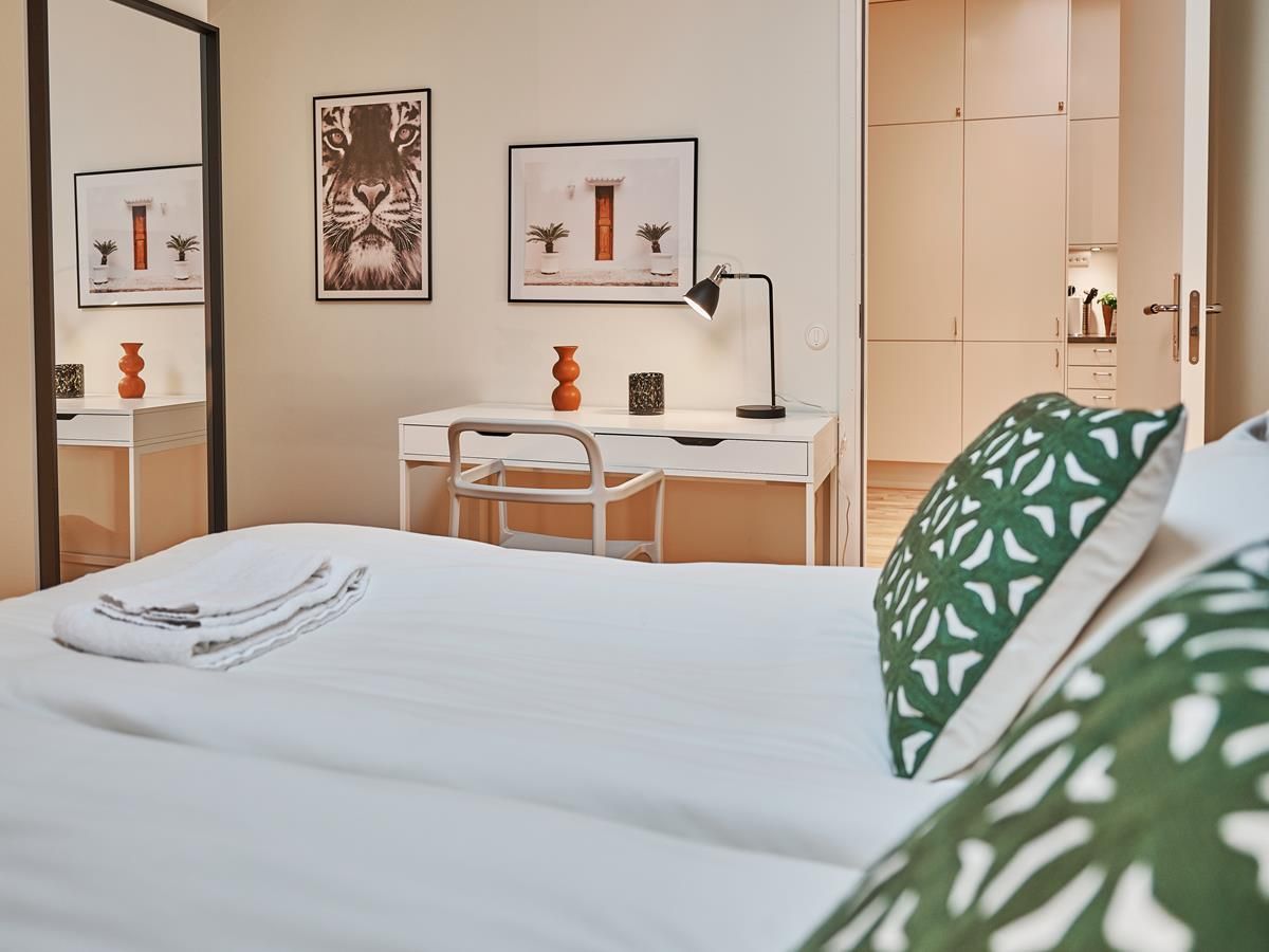 Carefully designed to meet the needs of both the corporate and leisure traveler, this apartment provides a comfortable and spacious home from home in a quintessentially contemporary style. With a superb selection of furnishings and state-of-the-art appliances and facilities, including a fully equipped kitchen, these roomy and welcoming serviced apartments are a great choice of accommodation for family, leisure, or corporate travelers.