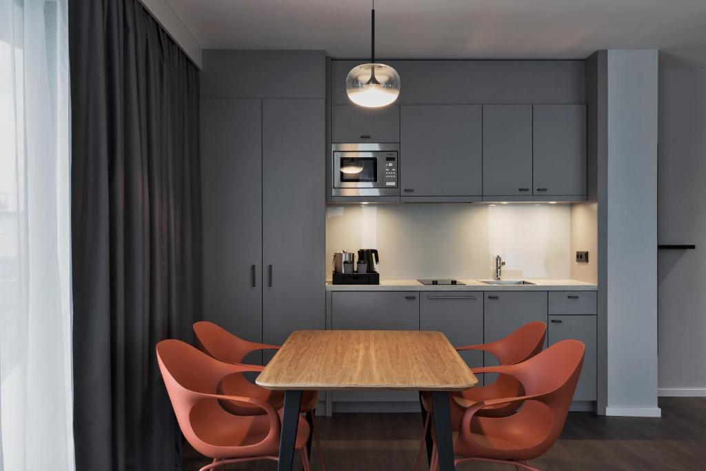 Set a pace that suits you at Residence Inn Frankfurt City Center. Whether you're with us for a few days, a few weeks, or a few months, your daily routine matters. Each spacious suite includes a breakfast buffet each morning, free high-speed Wi-Fi, a work desk, and a generously appointed kitchenette. The boardroom is available for small meetings, working lunches, or entertaining small groups. Start your day with a workout in the fitness center or simply relax in the sauna. Take a walk through the busy streets of Frankfurt – the hotel is just minutes from attractions including the Zeil, the old town with its Römer and the financial district.