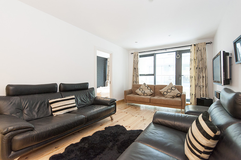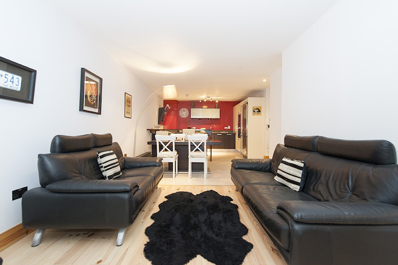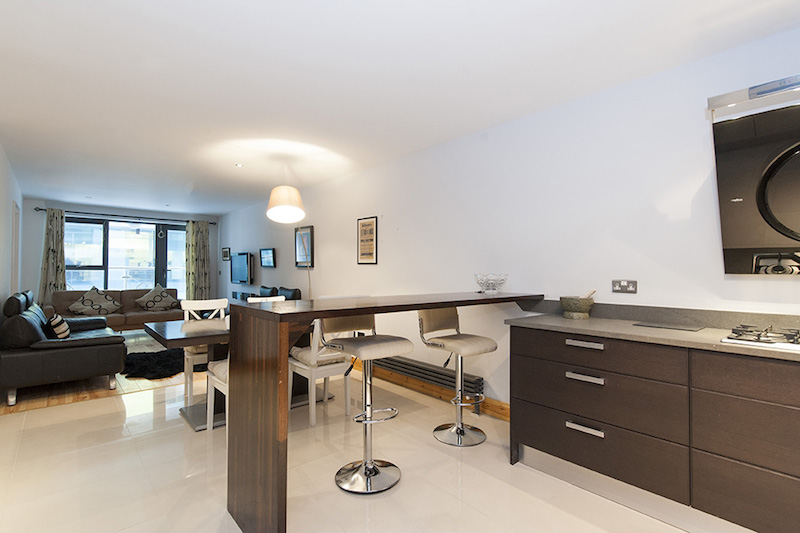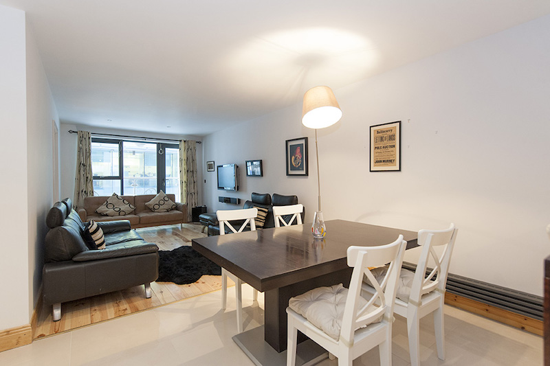 Located on Sir John Rogerson’s Quay, this modern apartment is in the very heart of Dublin’s vibrant Docklands Area, or as it has become known, ‘Silicon Docks’, due to the number of tech giants who have located operations in the area. It is also directly across the river from the Central Bank of Ireland, Dublin’s Convention Centre and the Irish Financial Services Centre – IFSC, all within an easy walk via the Samuel Beckett Bridge. Overlooking the River Liffey and just minutes from Grand Canal Dock this first floor apartment offers a tranquil base in the heart of the city while being surrounded by restaurants, bars and shops. In addition to a number of global tech companies, the area is also home to a variety of international law firms and Dublin’s Grand Canal Theatre, which bring a cosmopolitan energy and a real vibrancy to the area.