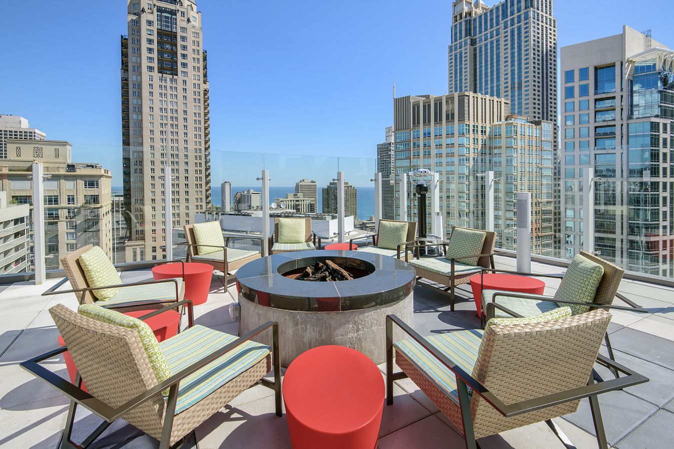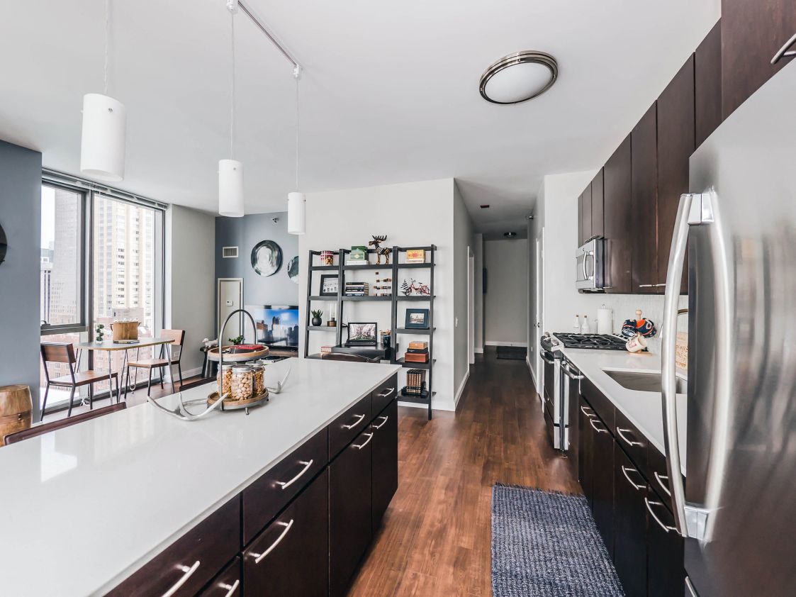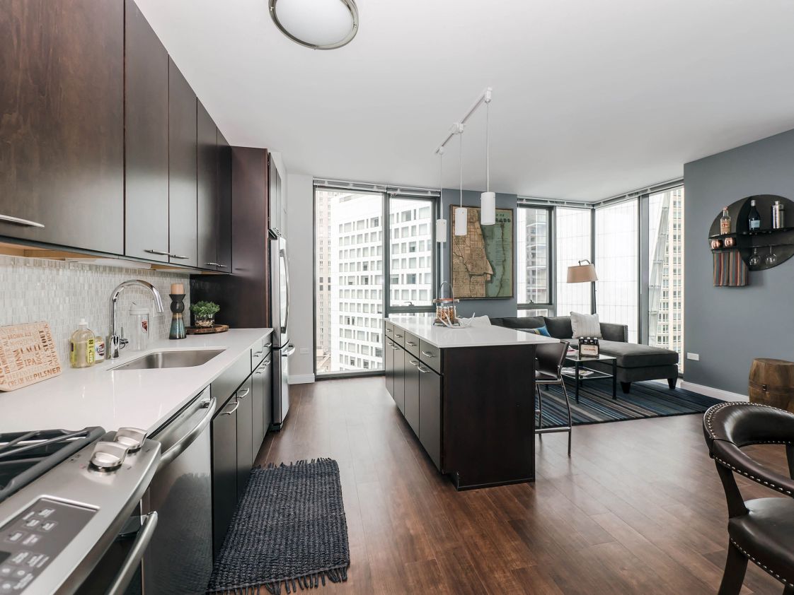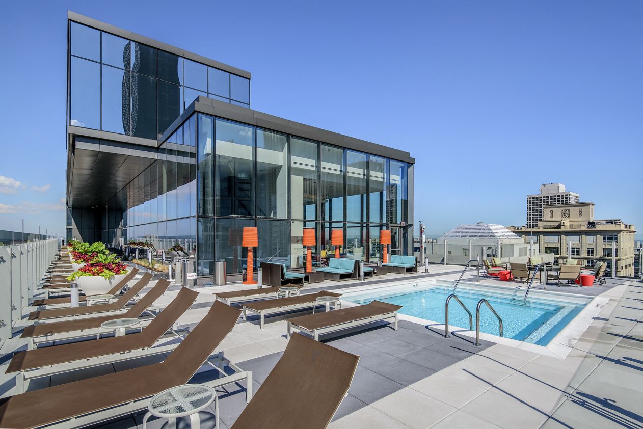 State & Chestnut offers pet-friendly studios, one, and two-bedroom apartments for rent, each of them designed and fully-equipped with the most modern of features. And with its easy access to public transportation and highways, our prime location brings you closer to the eclectic neighborhoods of Gold Coast, River North, Old Town, and Streeterville. State & Chestnut is loaded with amenities including a fitness center with a yoga studio, a screening room, resident lounges and a sky deck featuring a demonstration kitchen and an outdoor pool!
