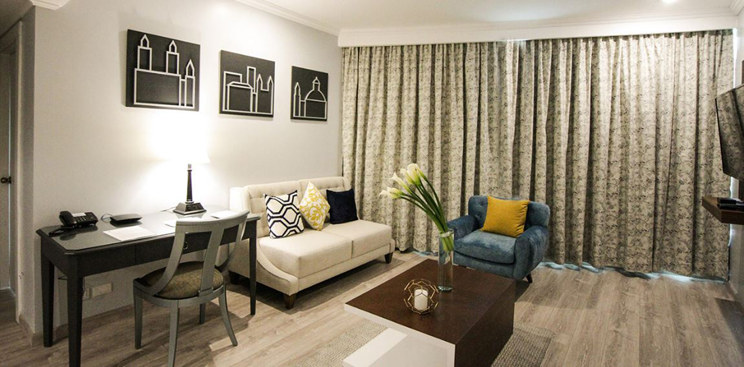 Located in the center of the business area of ​​Quito, the Suites with hotel services in Torres de Suites are located within the JW Marriott Hotel complex, and have access to a swimming pool, patio and gym. These modern apartments are located just 1 mile from the historic center of Quito and close to the main commercial and business centers. Enjoy the restaurants, cafeteria and room service 24 hours a day!