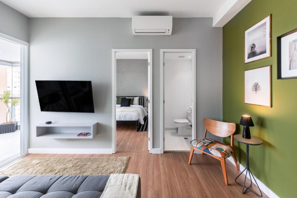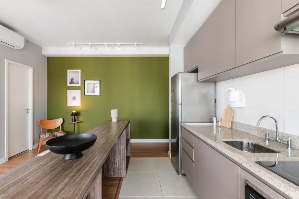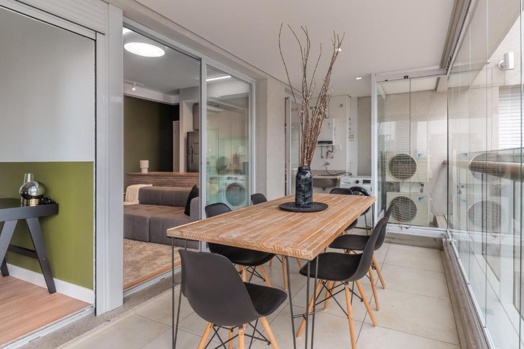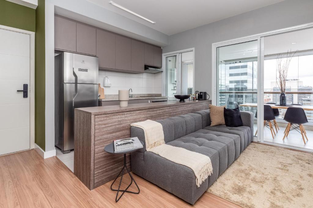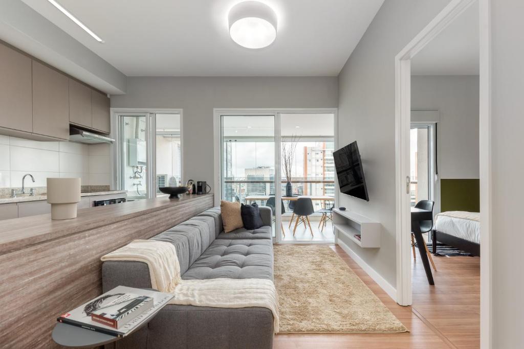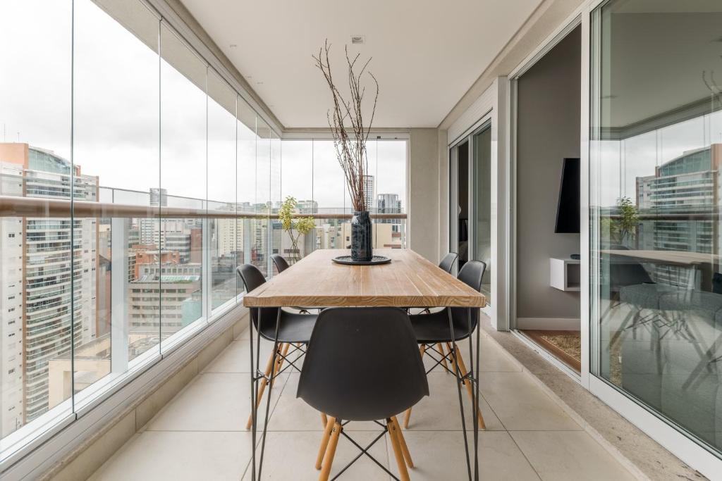 You deserve to live this unique experience in São Paulo. An apartment with differentiated design and smart home technology in a top location in Vila Olímpia. Organic local products and spa-quality linens on this 1-bedroom condo, fully furnished for shorter or extended stays. Despite a pool with panoramic views and a gym at your disposal in the building. If you need anything, count on our concierge always ready to help.