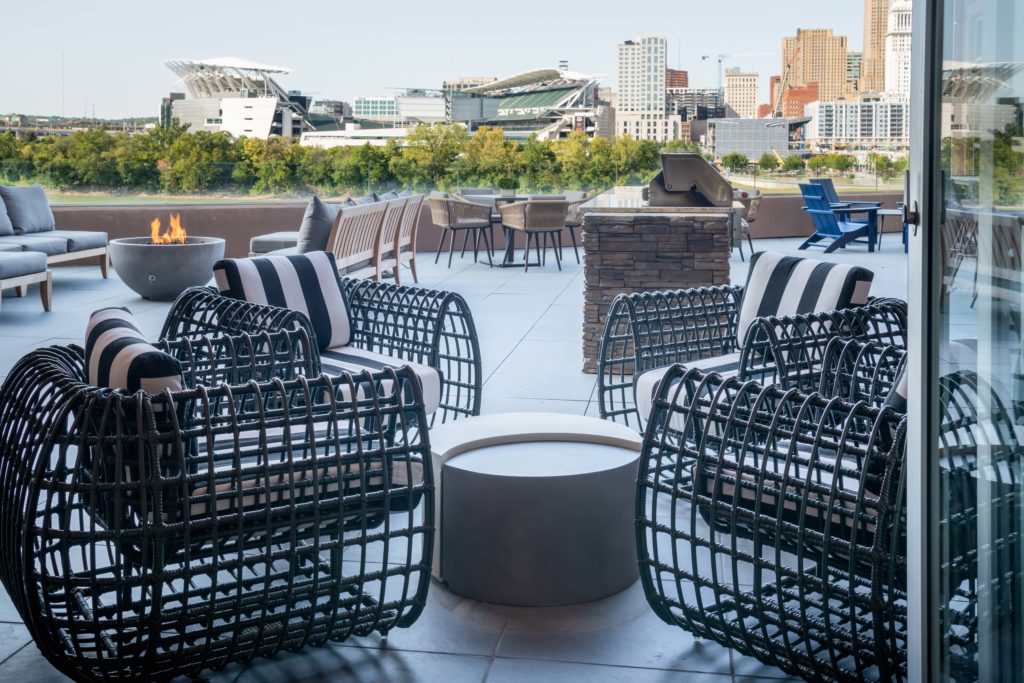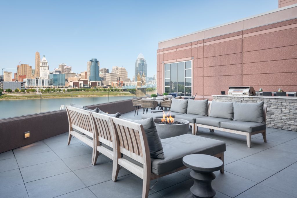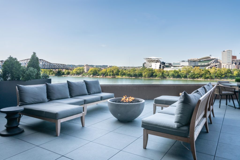 Garnishing the Covington skyline, Madison Place soars 260 feet above Downtown Cincinnati and the Ohio River. This exclusive collection of luxury apartments is enhanced by ravishing views and personalized service. Madison Place greets future residents with 187 architecturally redefined studio, 1-bedroom, and 2-bedroom spaces ranging from 724 – 1,981 square feet. These spaciously appointed apartments are just as roomy as they are inviting. Whether looking at the spectacular Cincinnati skyline that rests on the winding Ohio River, or at the rolling hills of Northern Kentucky, the views bring an elegant and distinguished ambience at Madison Place. Let the Cincinnati skyline serve as an ever-changing piece of artwork in your brand-new home. Madison Place offers an intentional viewpoint on what modern luxury living should be while remaining acquainted with Downtown Cincinnati.